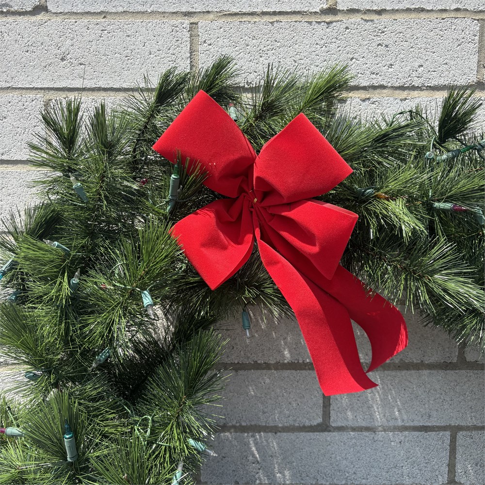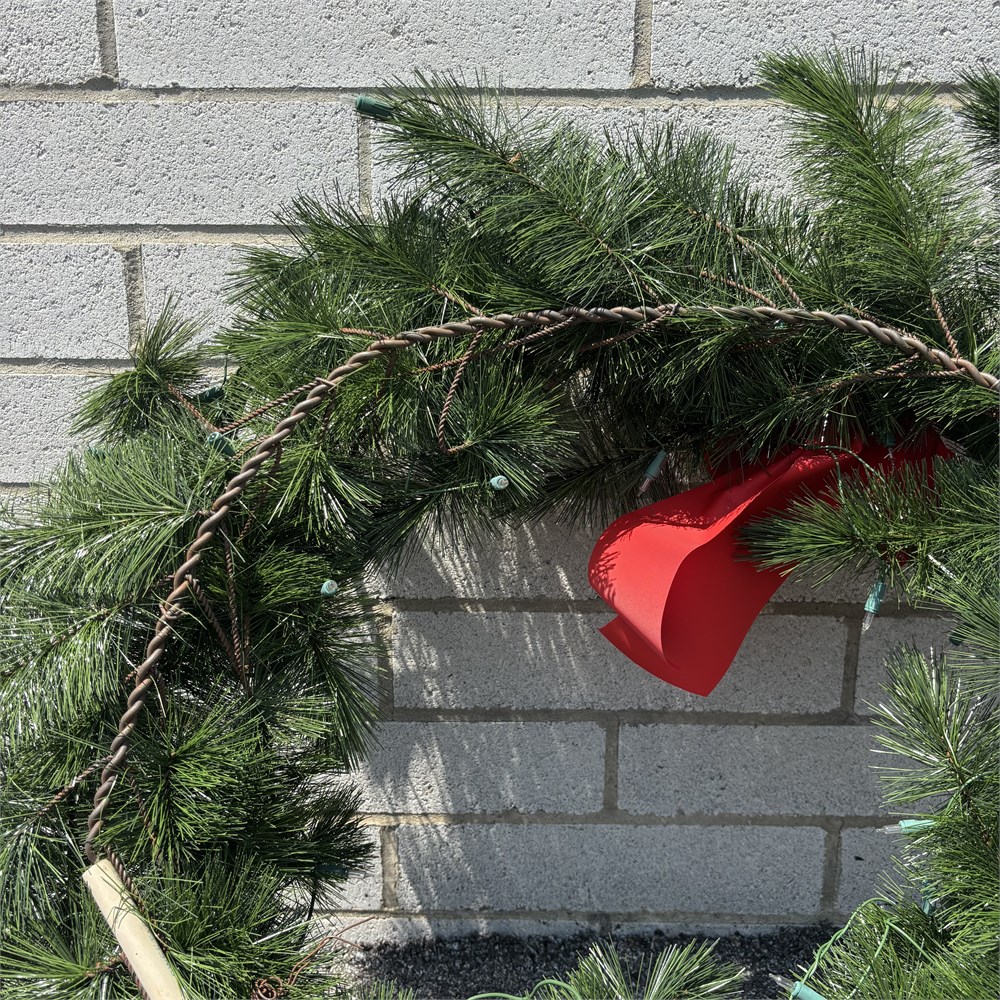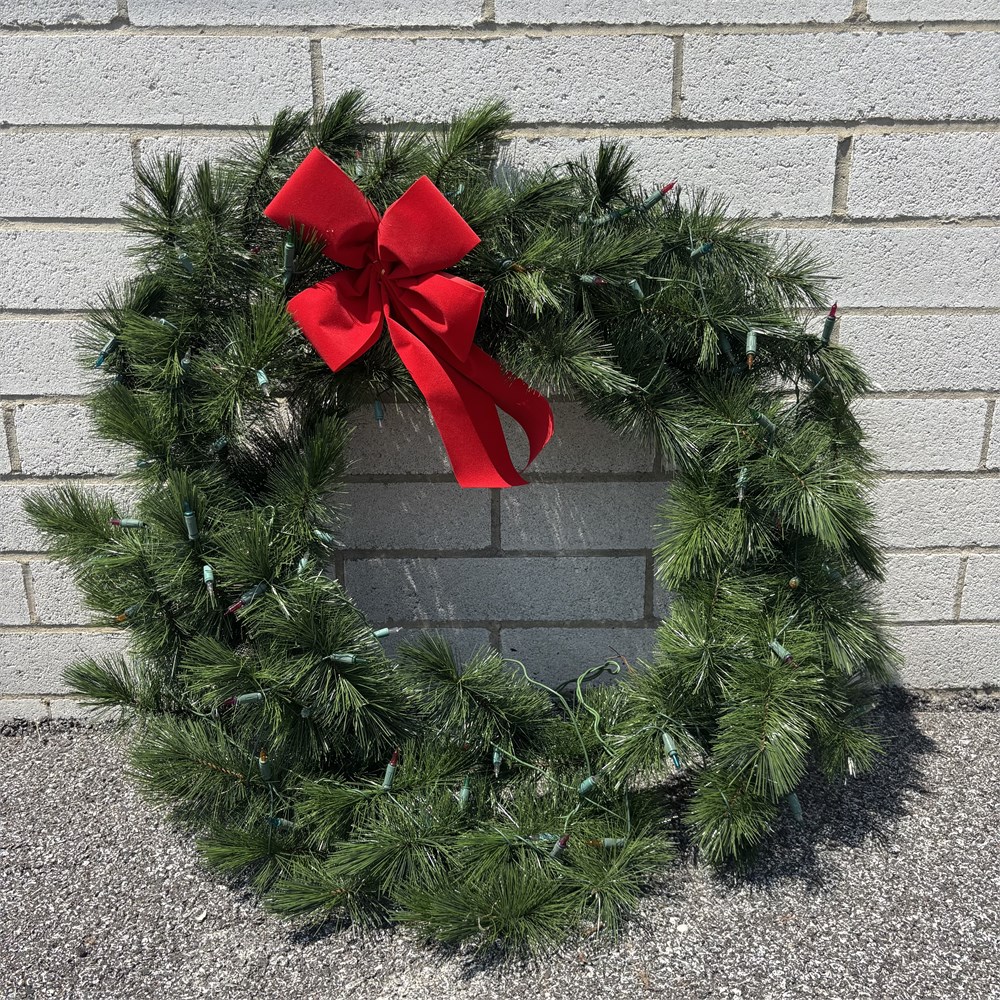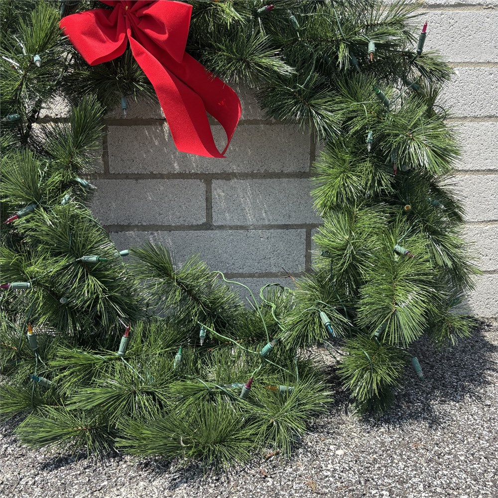 LARGE Artificial Pine Needle Christmas Wreath w/ Bow - Approx. 38"