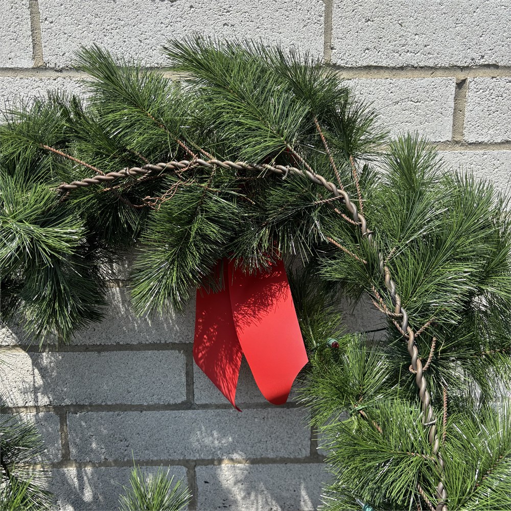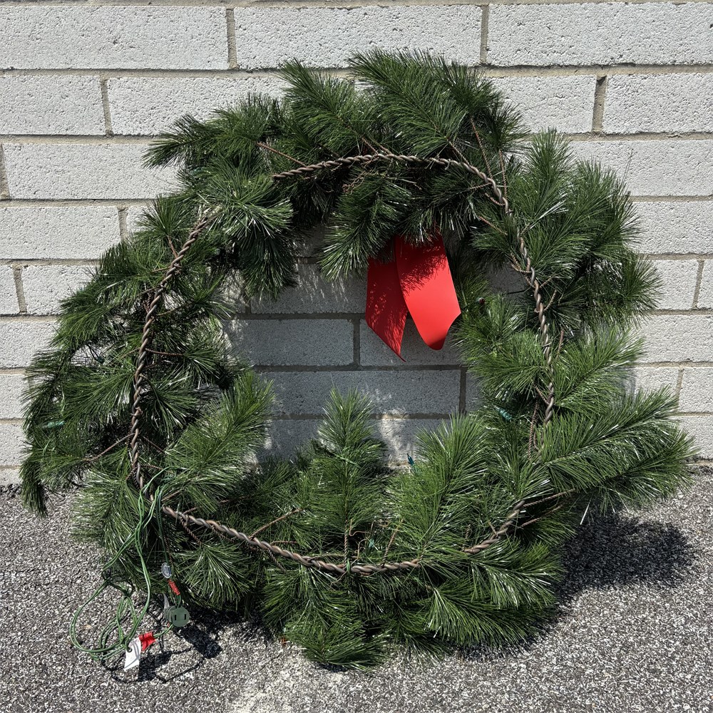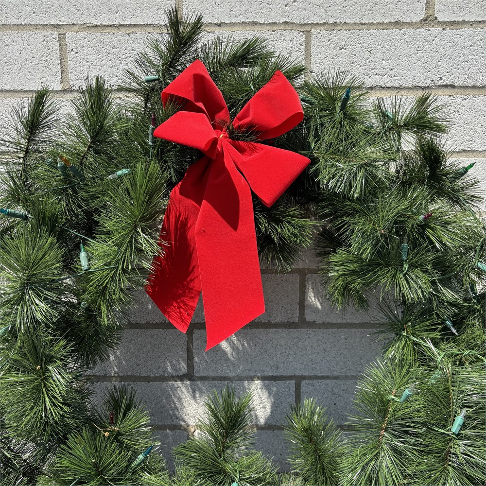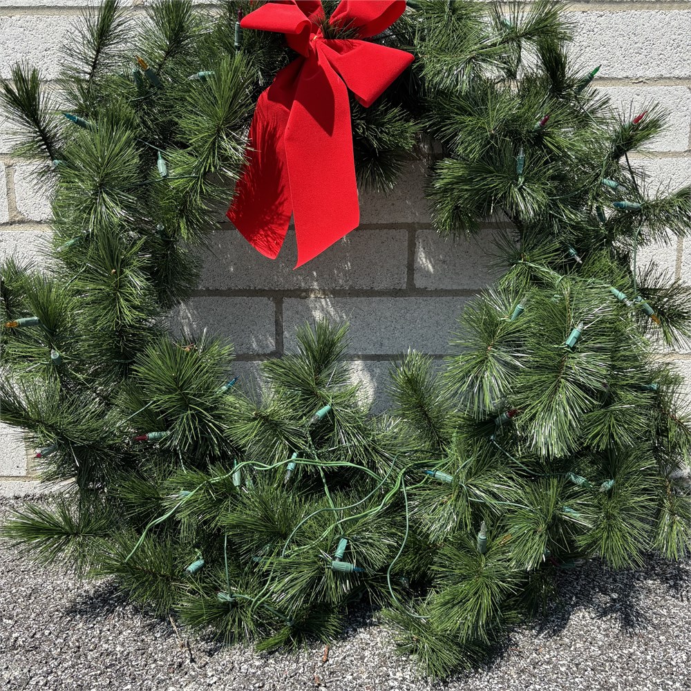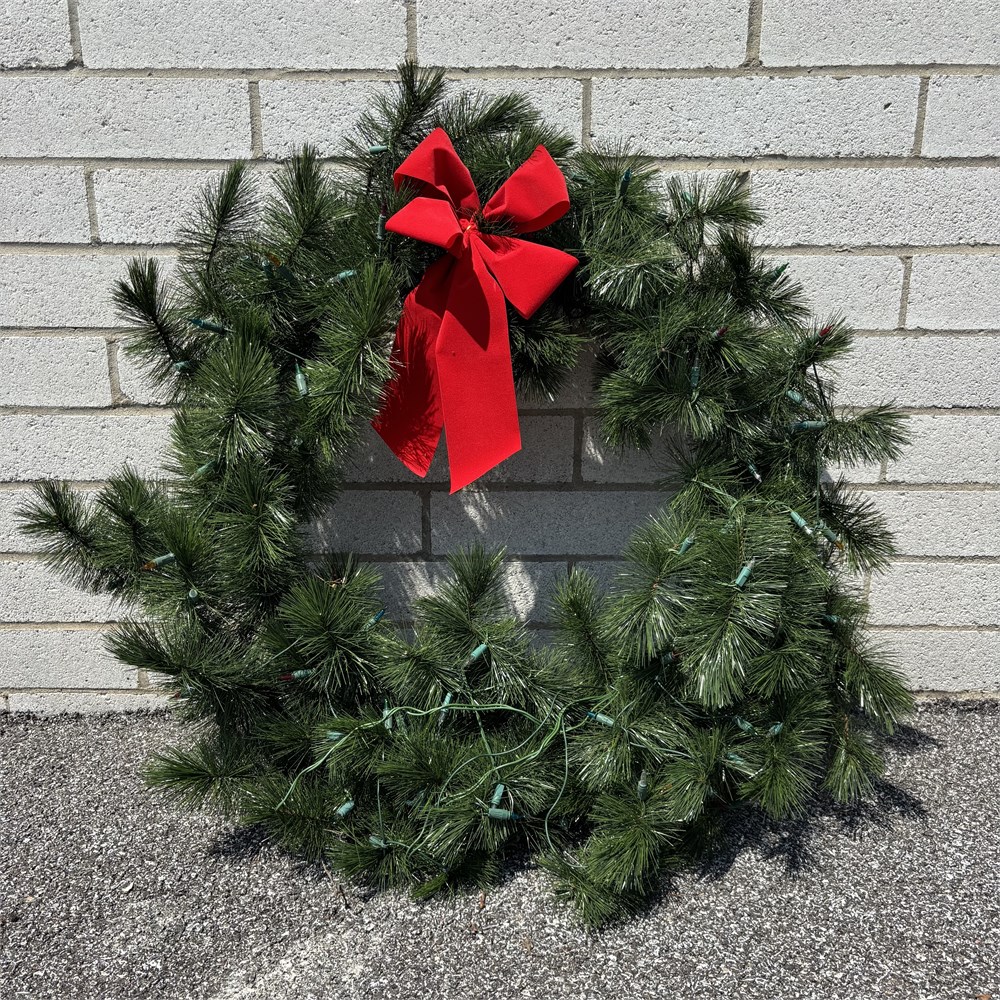 LARGE Long Needle Pine Artificial Christmas Wreath w/ Bow (approx 38”)