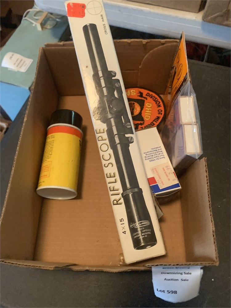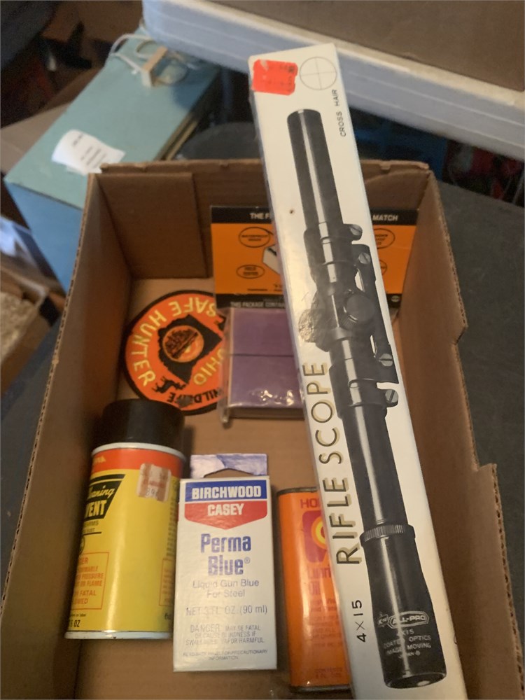 Gun Accessories Lot - Rifle Scope, Gun Cleaning Solvent, Perma Glue & More View Watchlist >