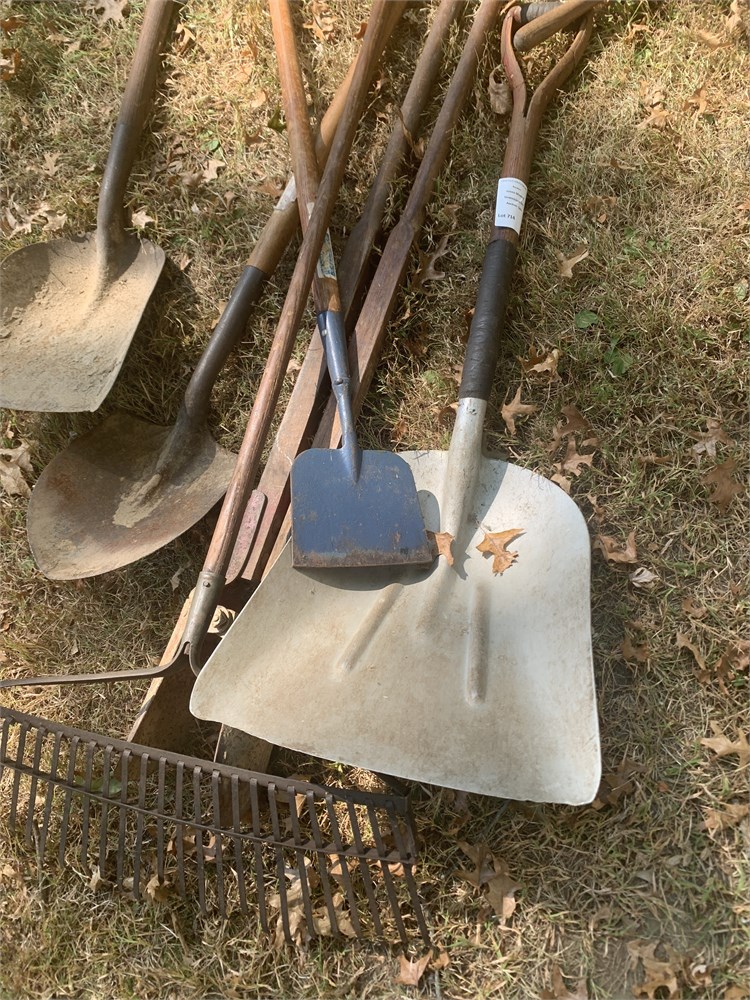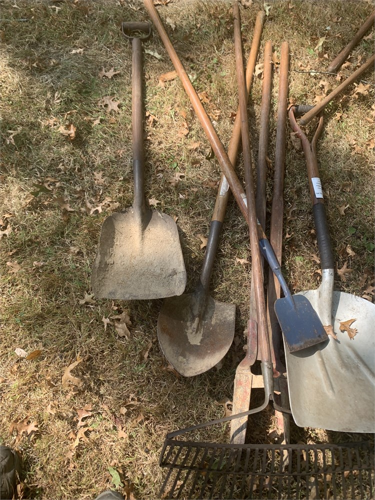 Lot Of Yard Tools - Post Hole Digger, Shovels, Rakes, & More View Watchlist >