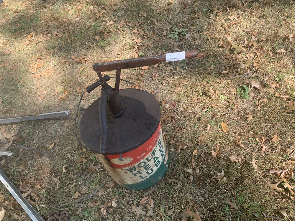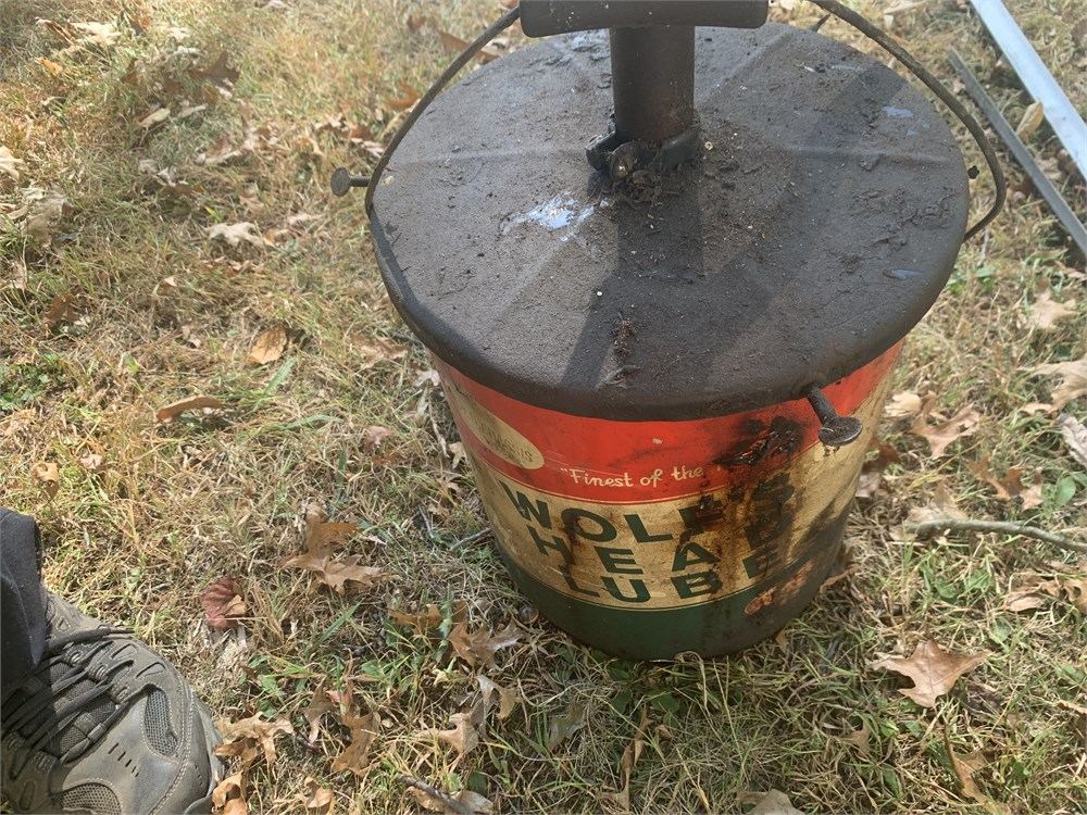 Vintage Wolfs Head 5-gallon Oil Can With Hand-Operated Pump View Watchlist >
