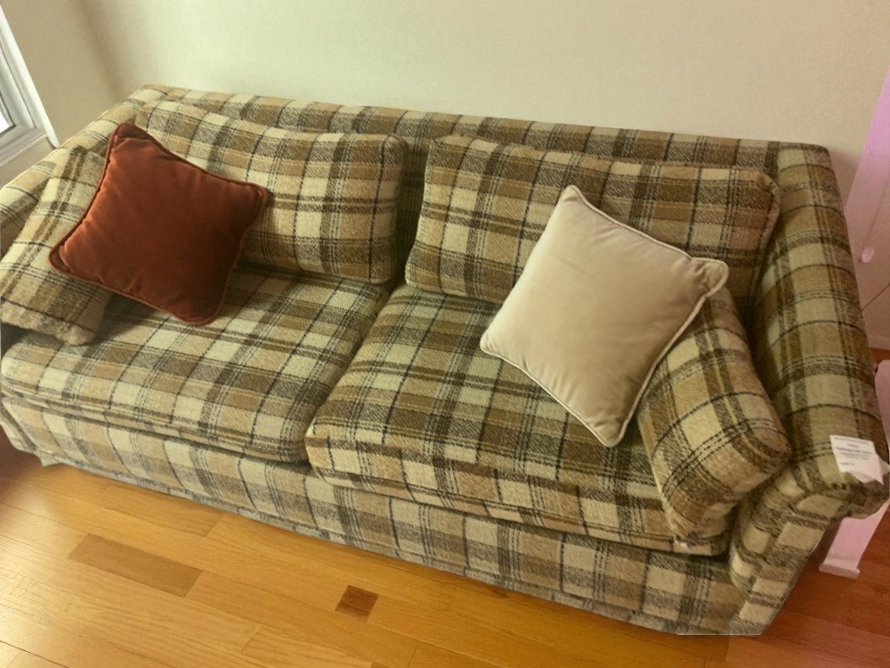 MCM Plaid Patterned Sleeper Sofa/Couch W/Throw Pilllows 70 x 34.5 x 24.5 View Watchlist >
