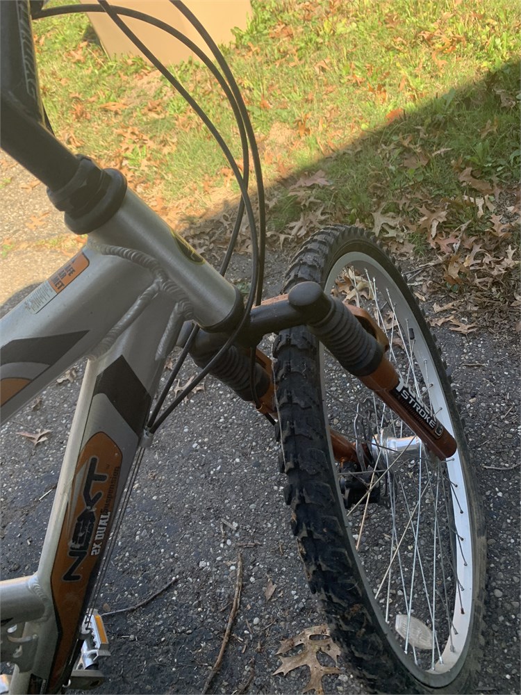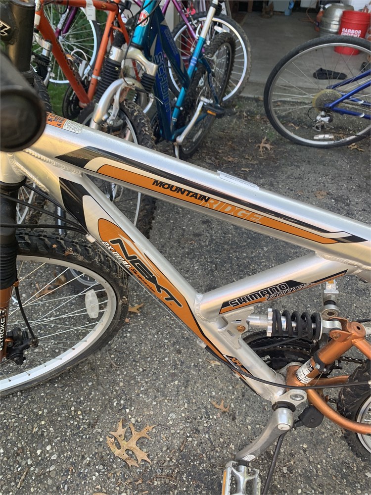 Orange & White Next Mountain Ridge 2X Dual Suspension Metal Frame Mountain Bike View Watchlist >