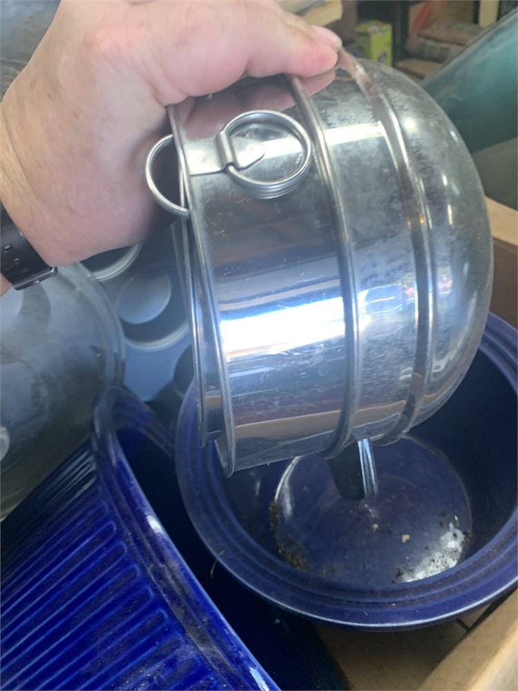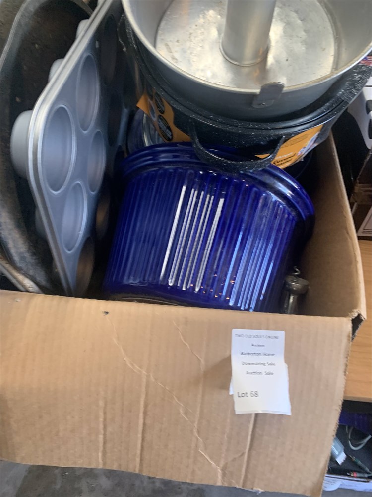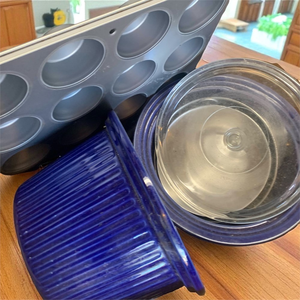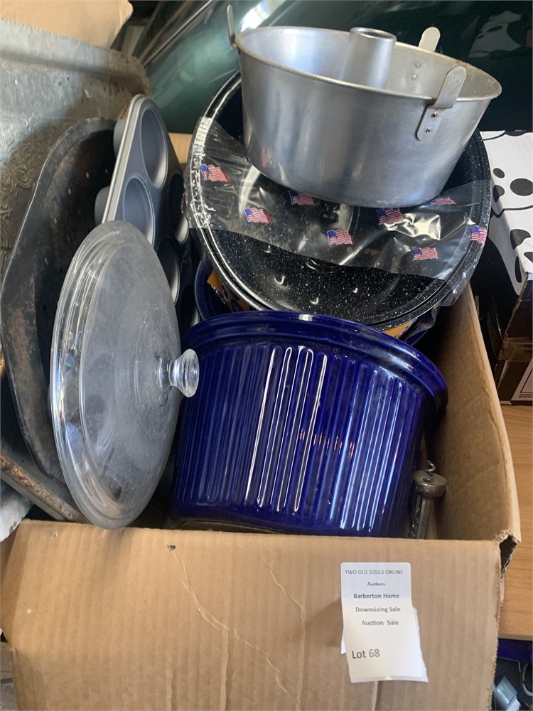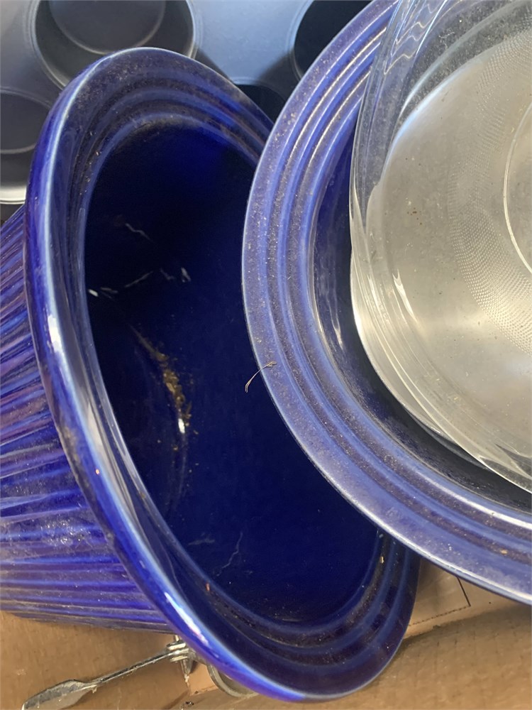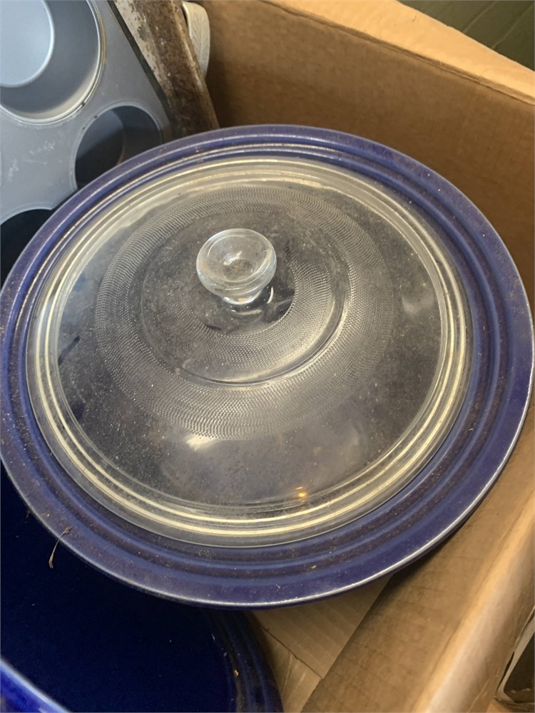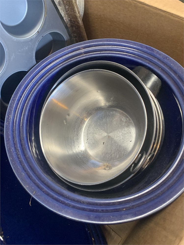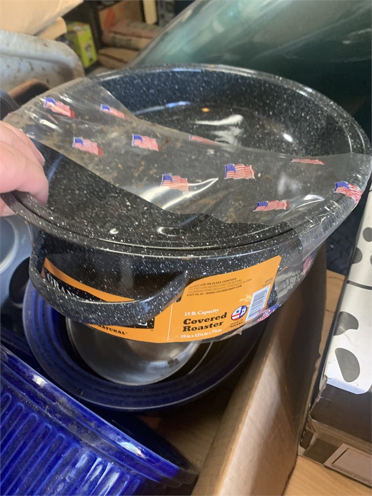 Cobalt Blue Crock W/Glass Lid, Granite Ware Covered Oval Roaster, Metal Bowls View Watchlist >