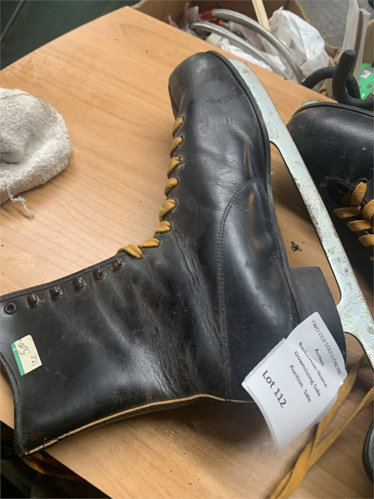Vintage Black Leather Ice Skates W/Yellow Laces View Watchlist >