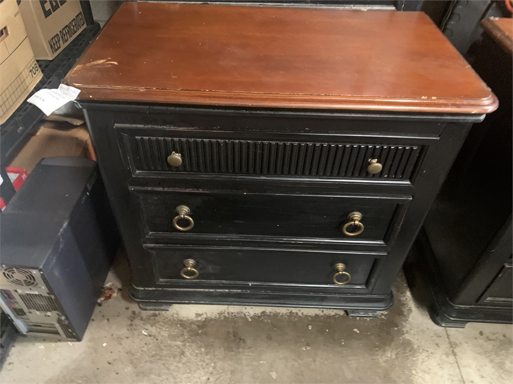Vintage Black and Brown Wood Three-Drawer Nightstand/Chest of Drawers View Watchlist >