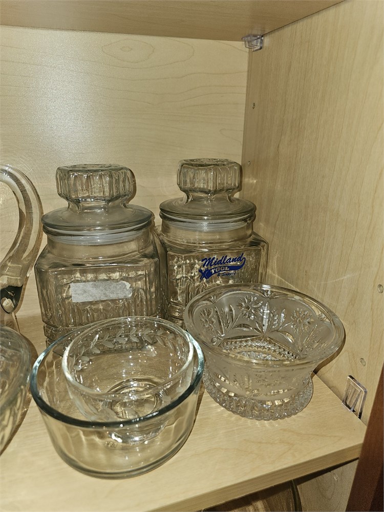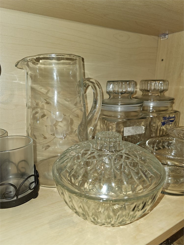 Cupboard Cleanout- Glass Salad Bowls, Lidded Candy, Pitcher & More