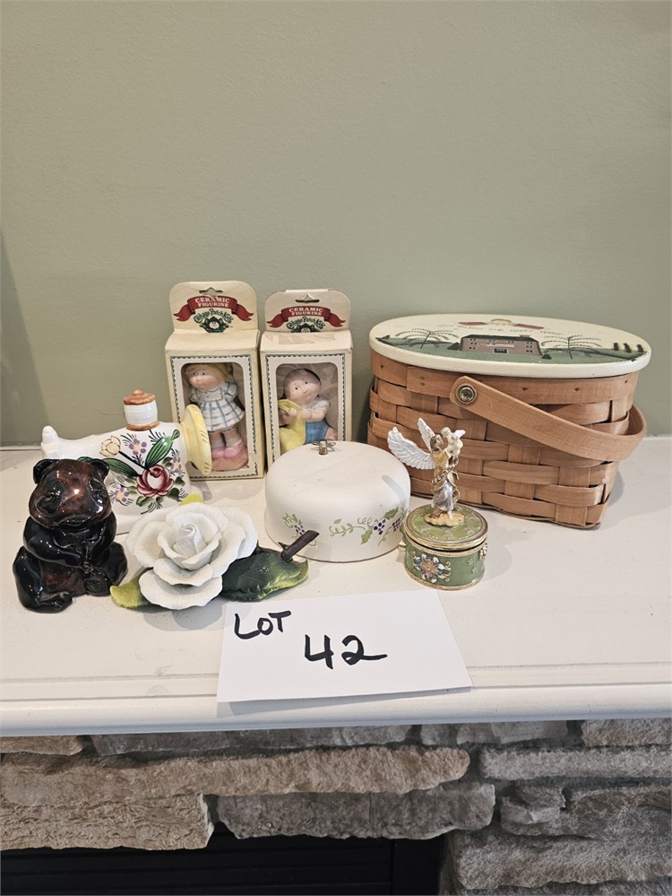 Mixed Decor Lot- Figurines, Music Box, Basket & More