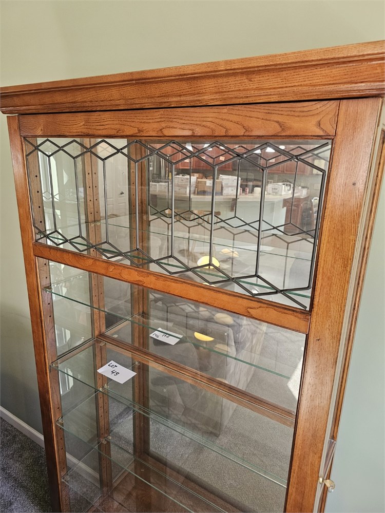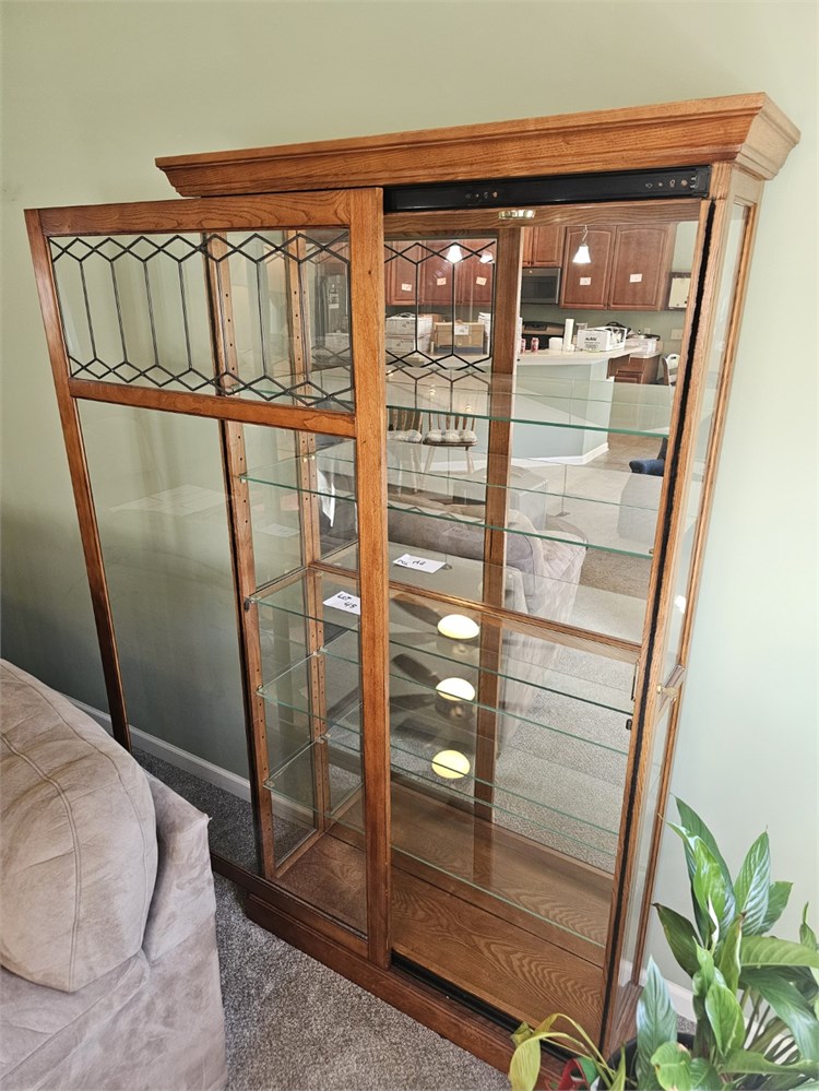 Lighted Wood & Glass Shelf Curio Cabinet With Side Lock & Key