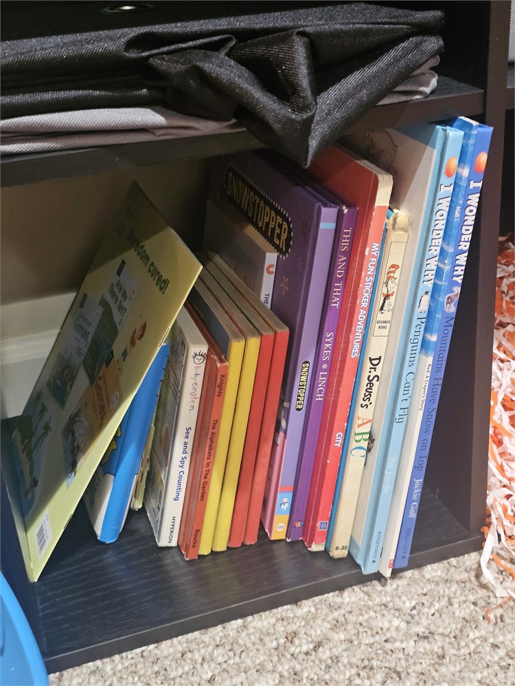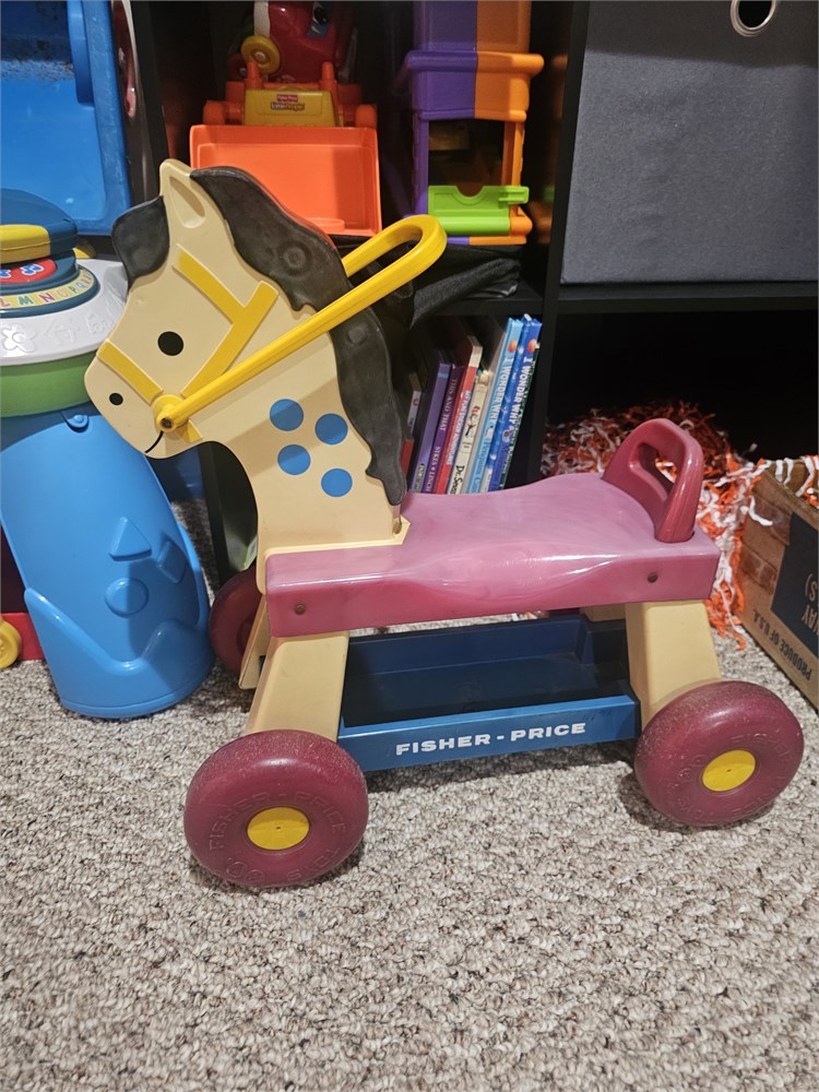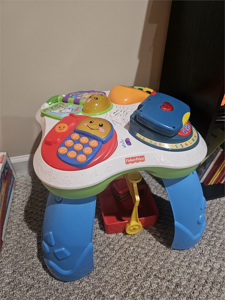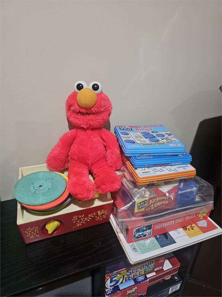 Mixed Toy Lot- Wood shelf, Bowling game, Elmo, Fisher Price, Books & More View Watchlist >