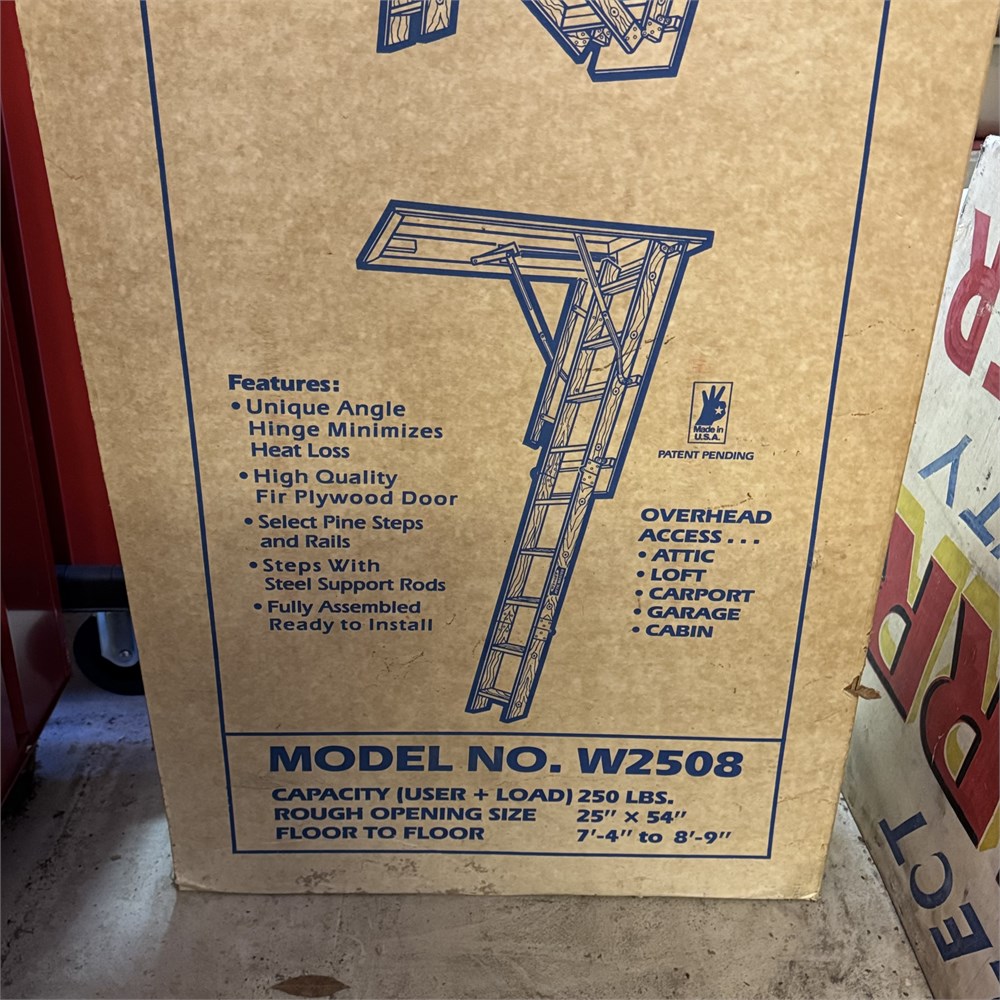 NEW Werner Attic Master Wood Attic Ladder 25in W x 54in L x 8ft H Ceiling W2508