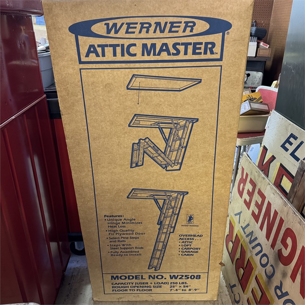 NEW WERNER ATTIC MASTER Wood Attic Ladder 25" x 54" x 8ft H Ceiling W2508 View Watchlist >