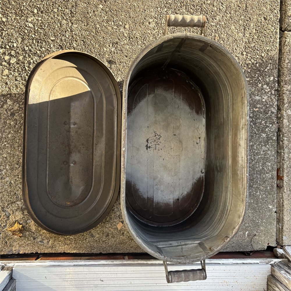 Antique Metal Boiler w/ Wood Handles - 24 x 14 x 13"T View Watchlist >