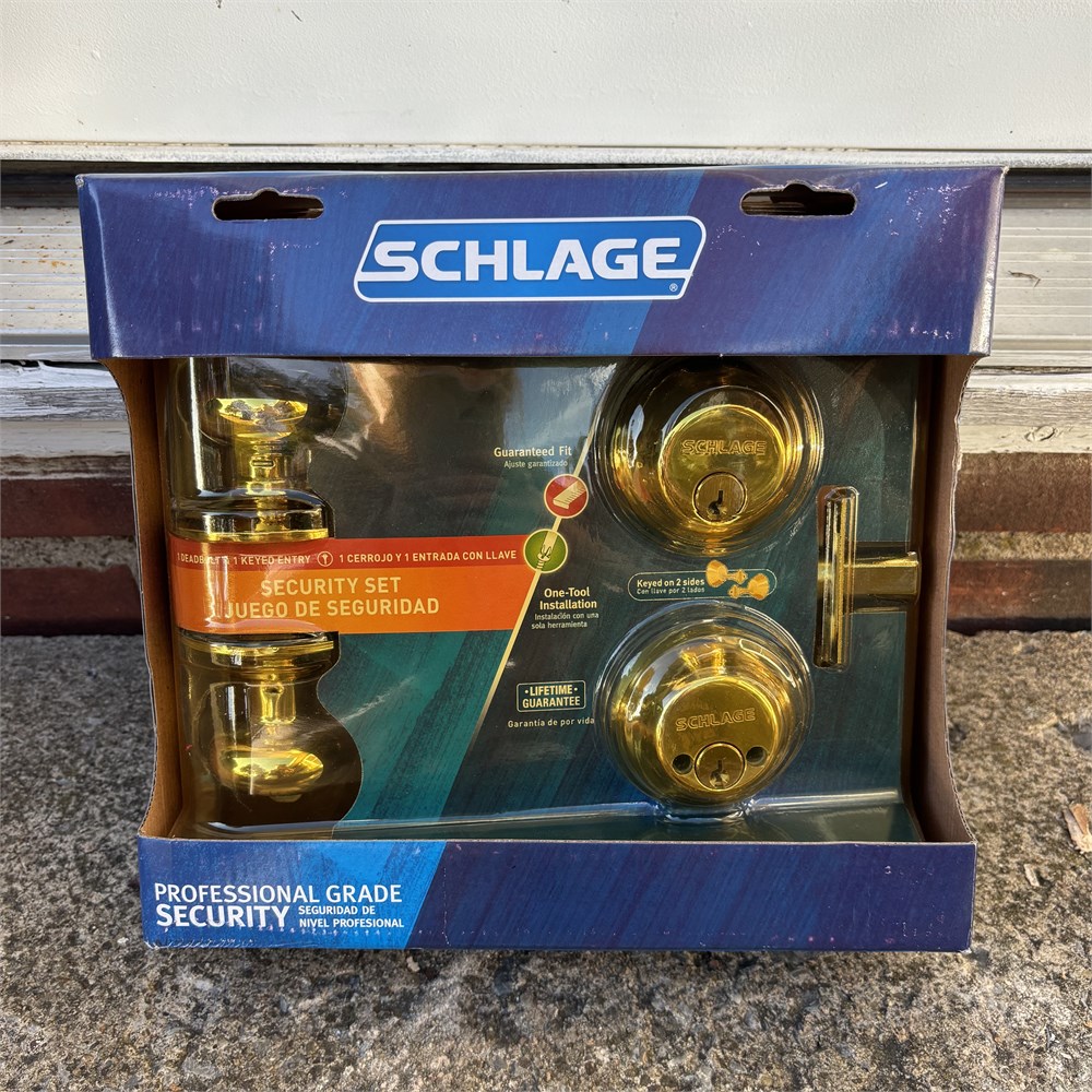 New Schlage Security Set - Door Locks Keyed Entry w/ Deadbolts, Brass Finish View Watchlist >