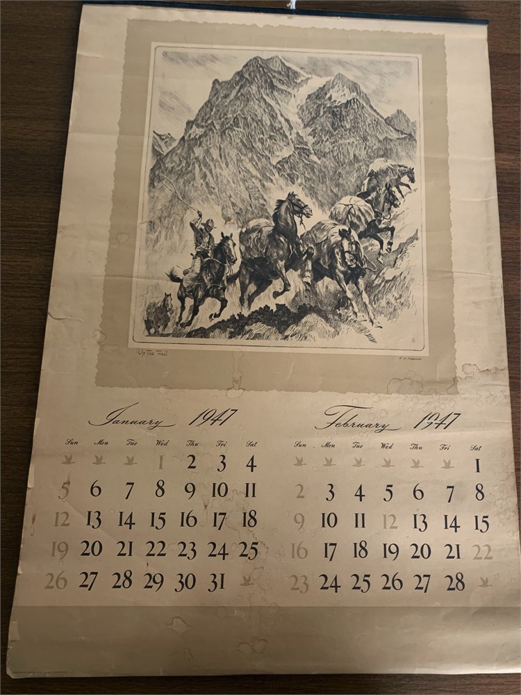 1947 Calendar Featuring Art Print Up The Trail by Reinhold H. Palenske View Watchlist >