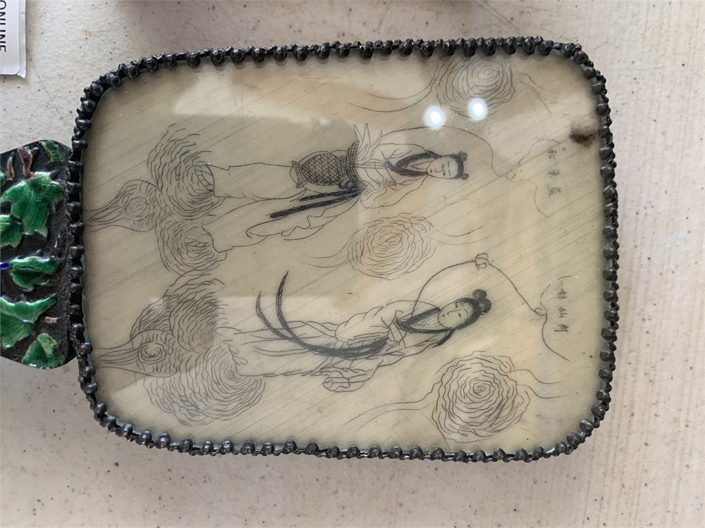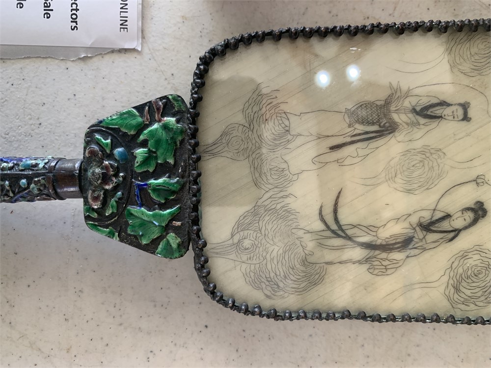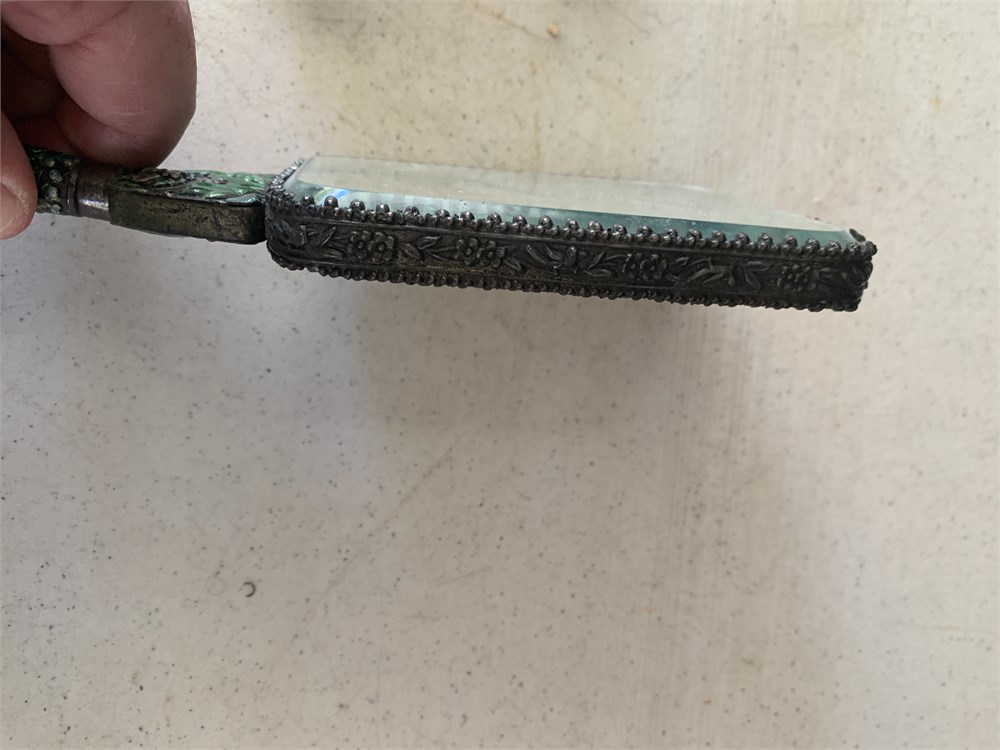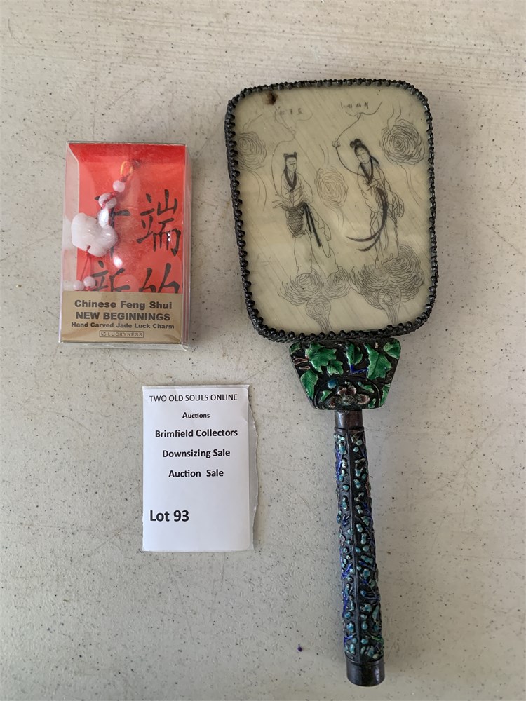 Asian Hand Mirror W/Jade Handle & Chinese Feng Shui Hand Carved Jade Luck Charm View Watchlist >