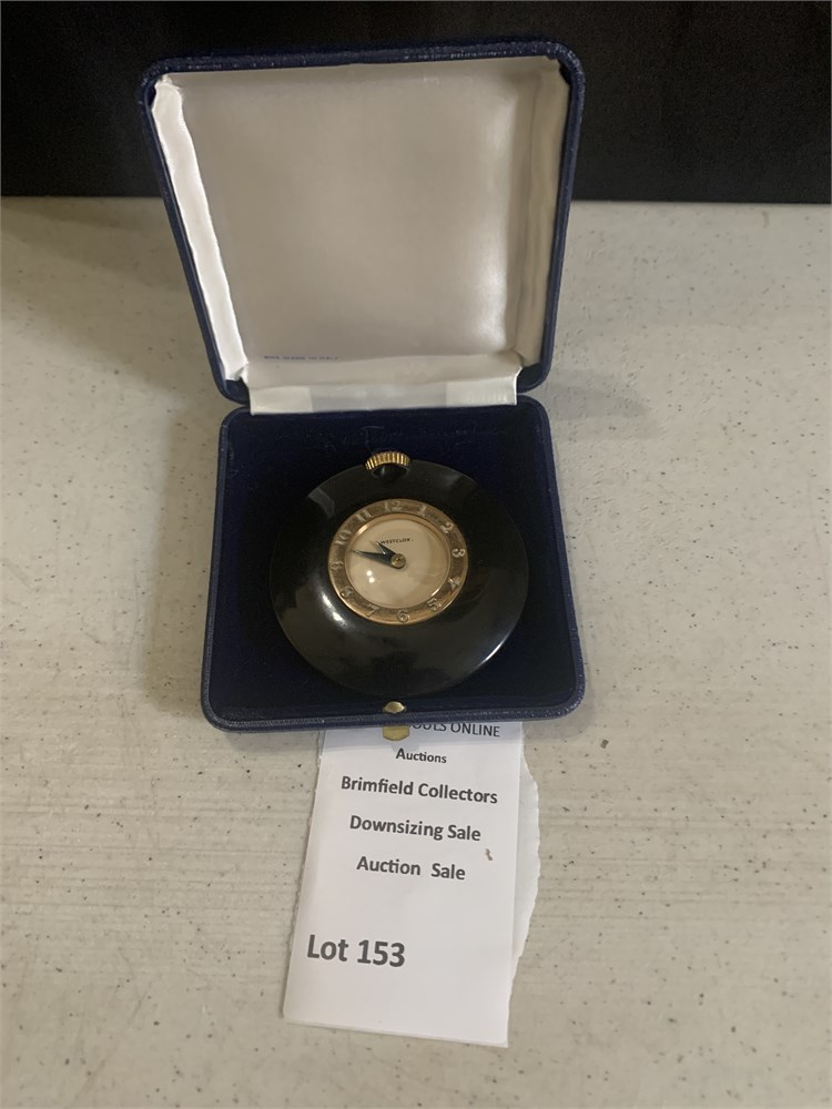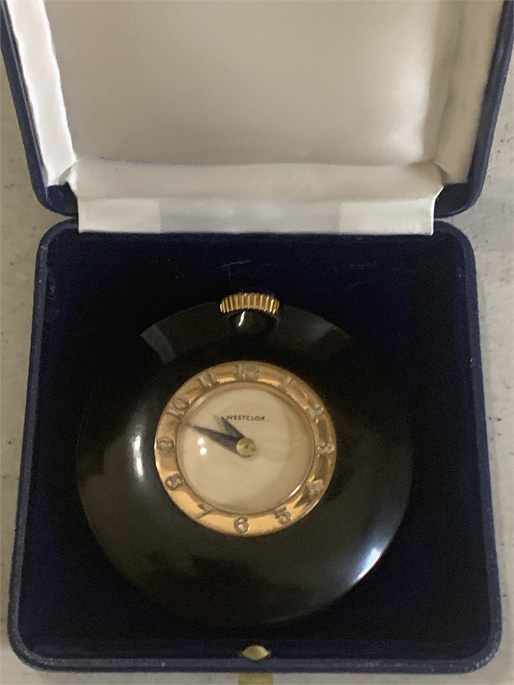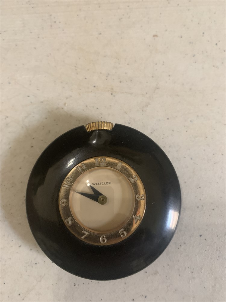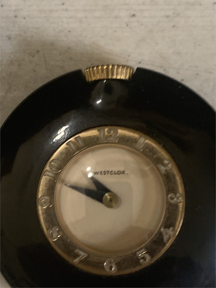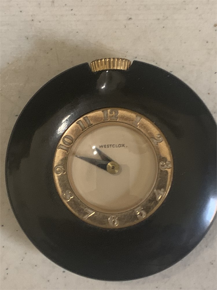 Westclox Art Deco Purse Watch W/Black Bakelite Case & Brass Dial View Watchlist >