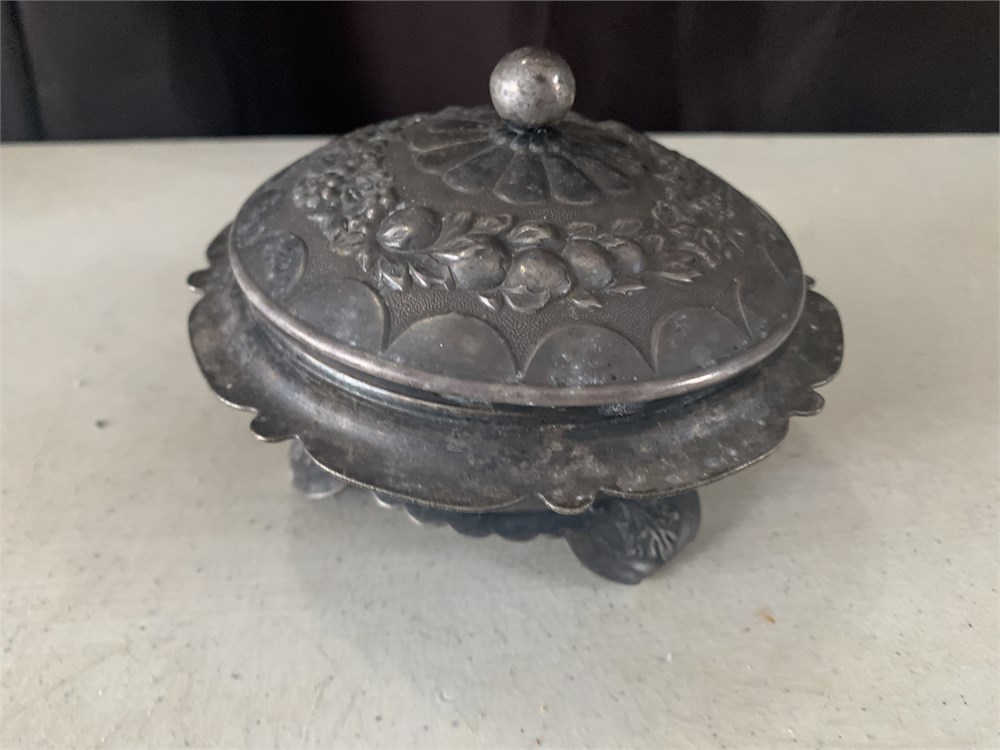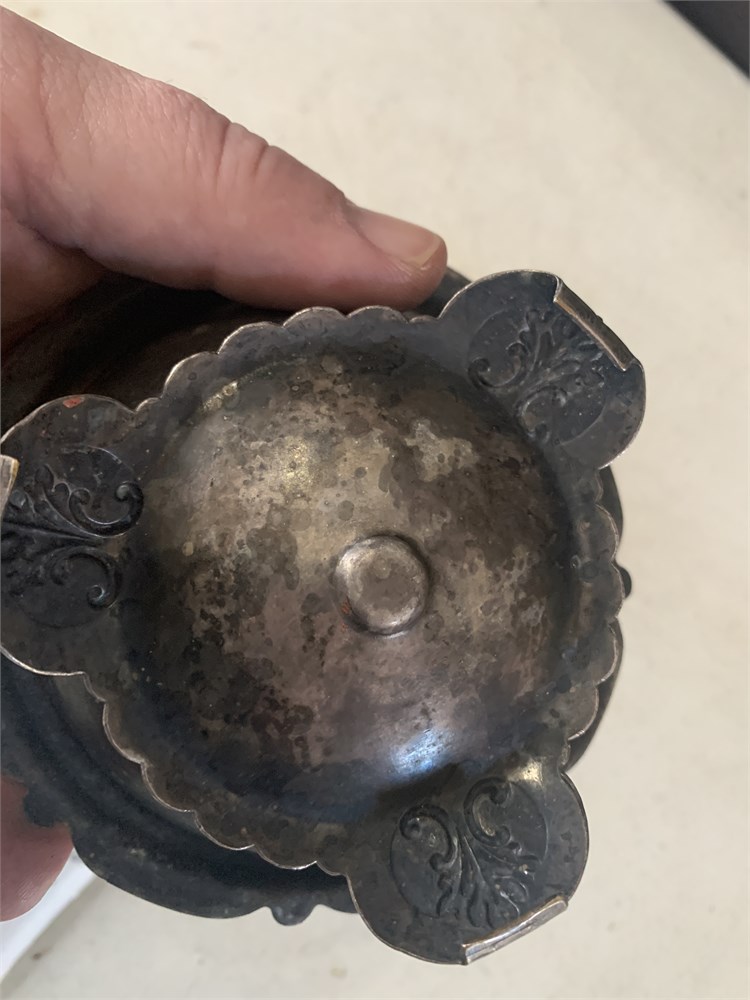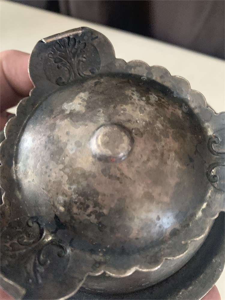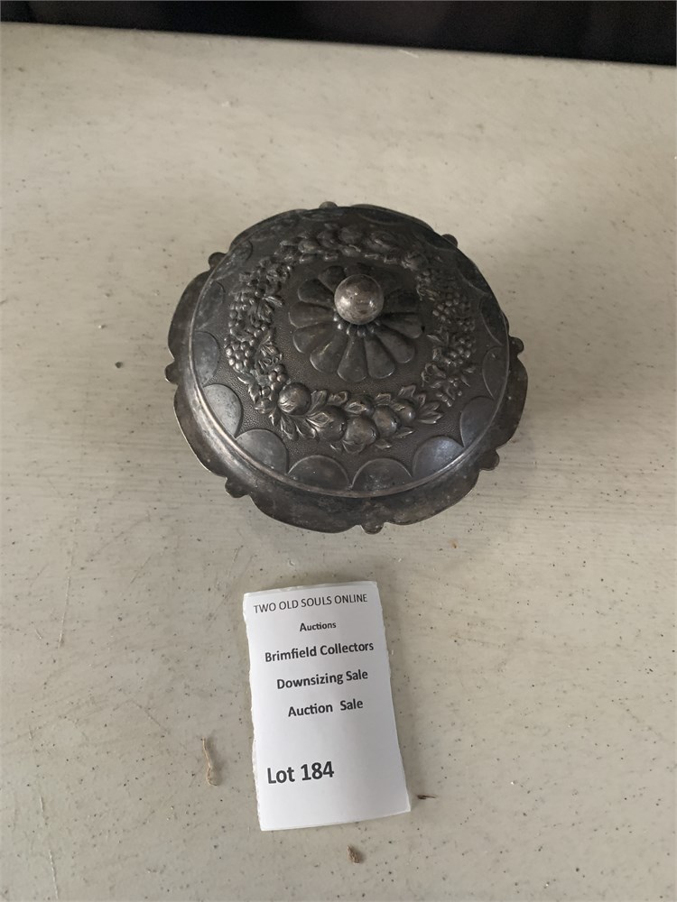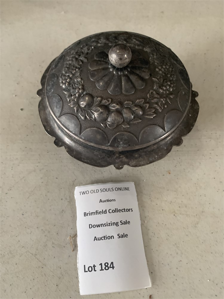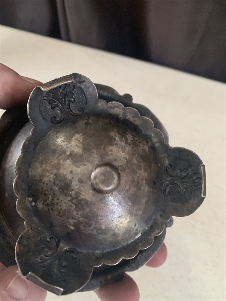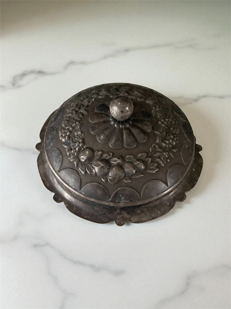 Vintage Metal Sugar Bowl W/Lid Embossed W/Fruit & Vine Pattern & Round Knob View Watchlist >