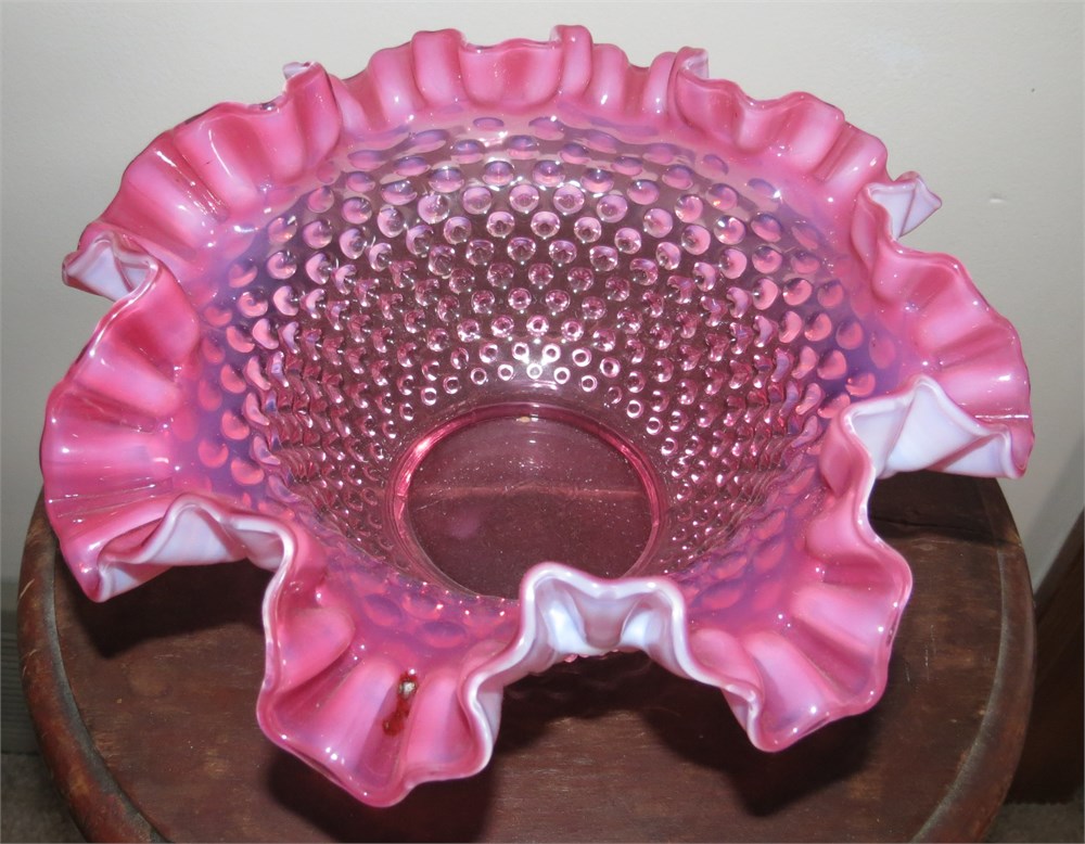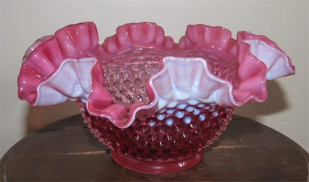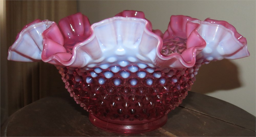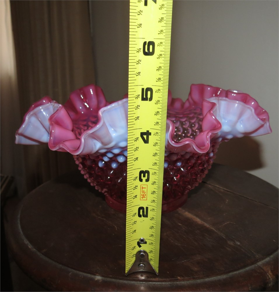 Vintage Fenton Cranberry Opalescent Hobnail Bowl View Watchlist >