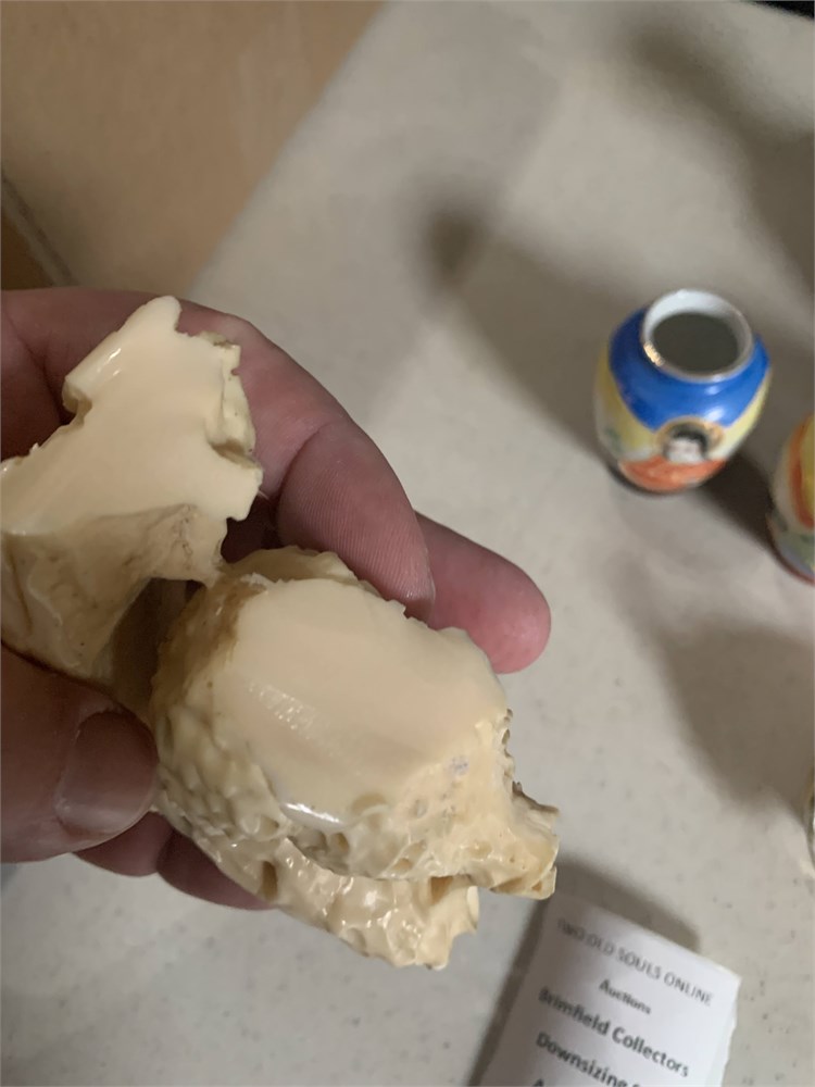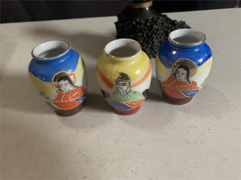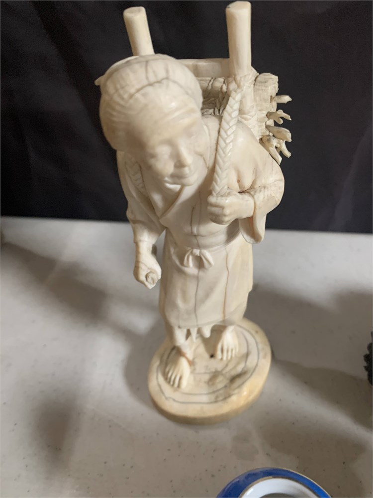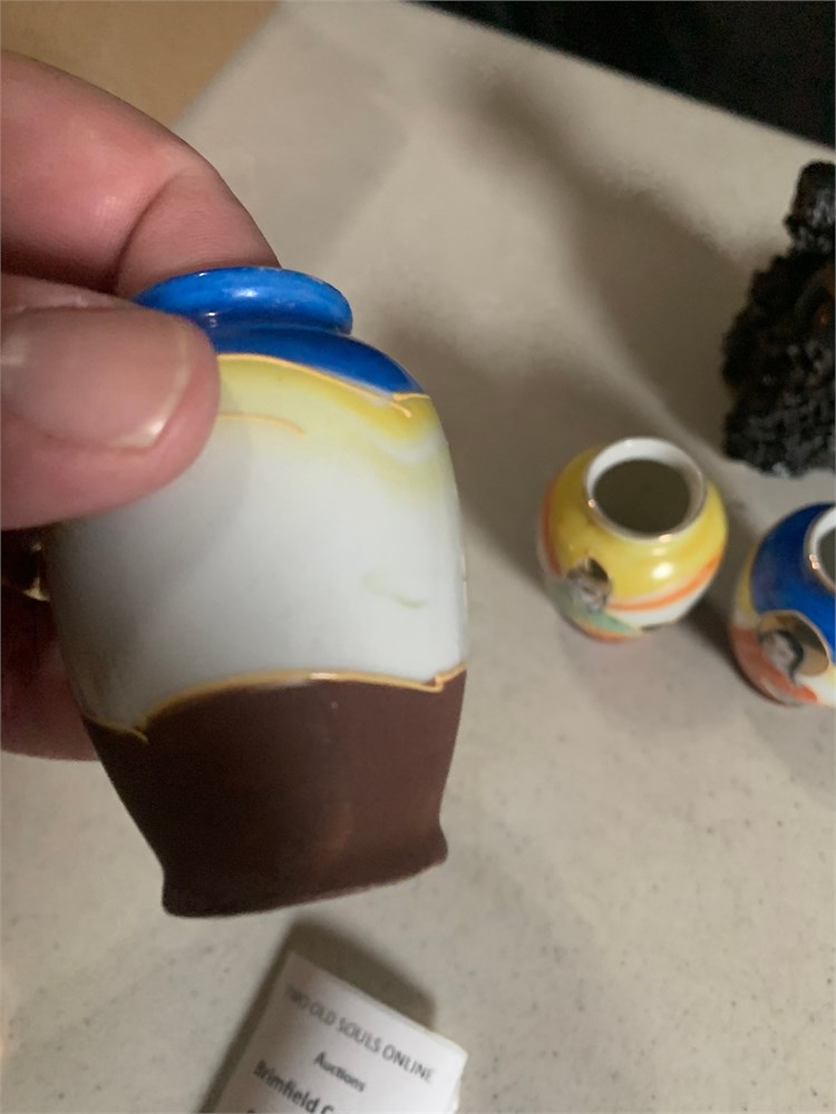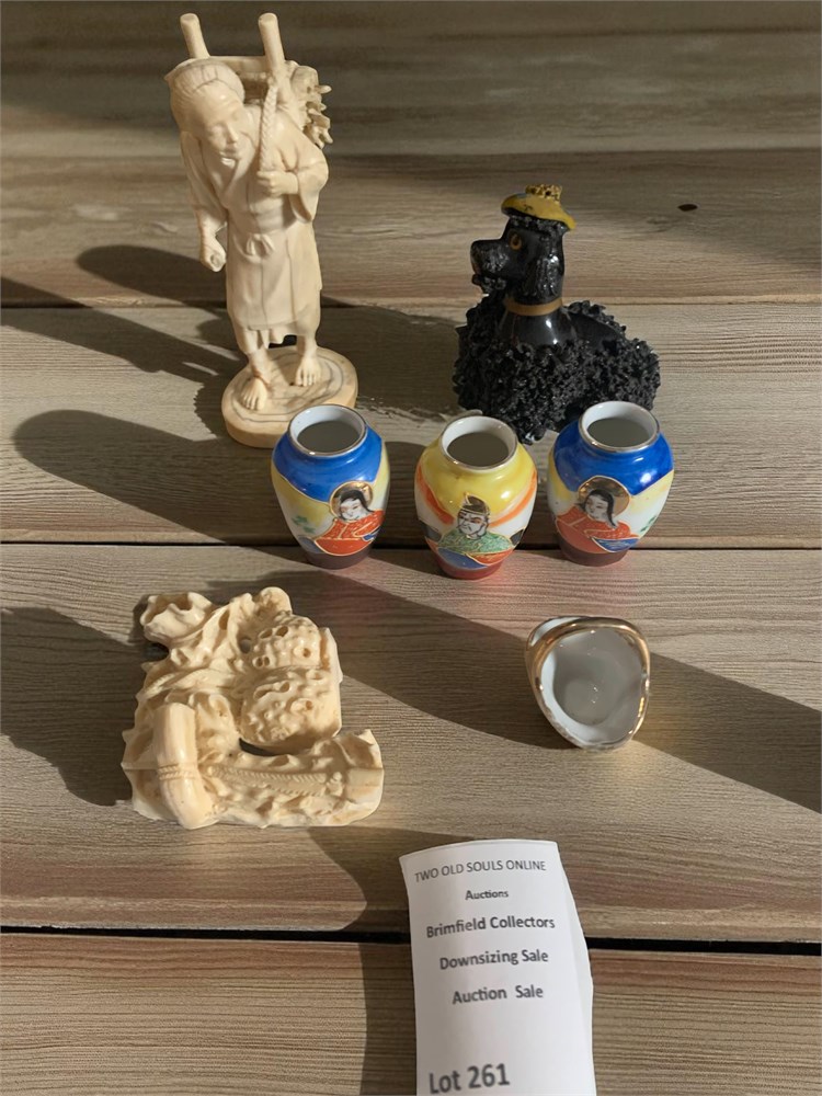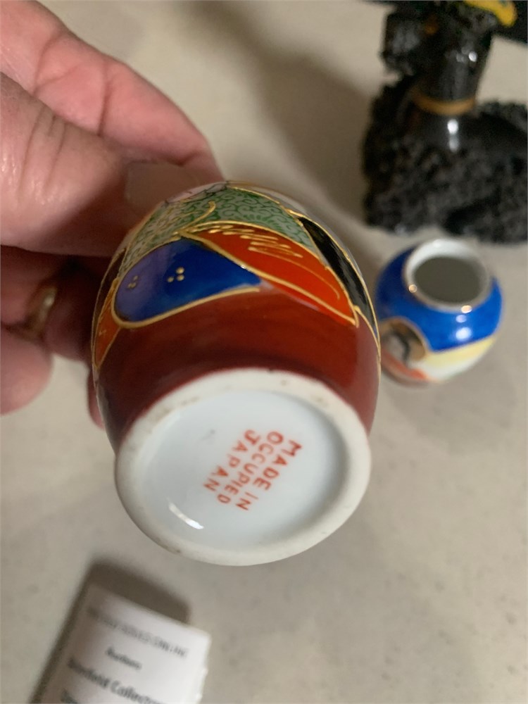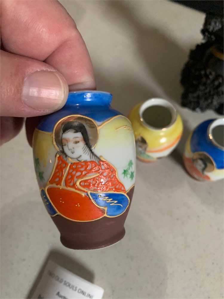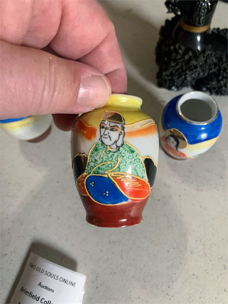 Japanese Okimono Carving, Ivory Incense Burner, Mini Satsuma Moriage Vases View Watchlist >