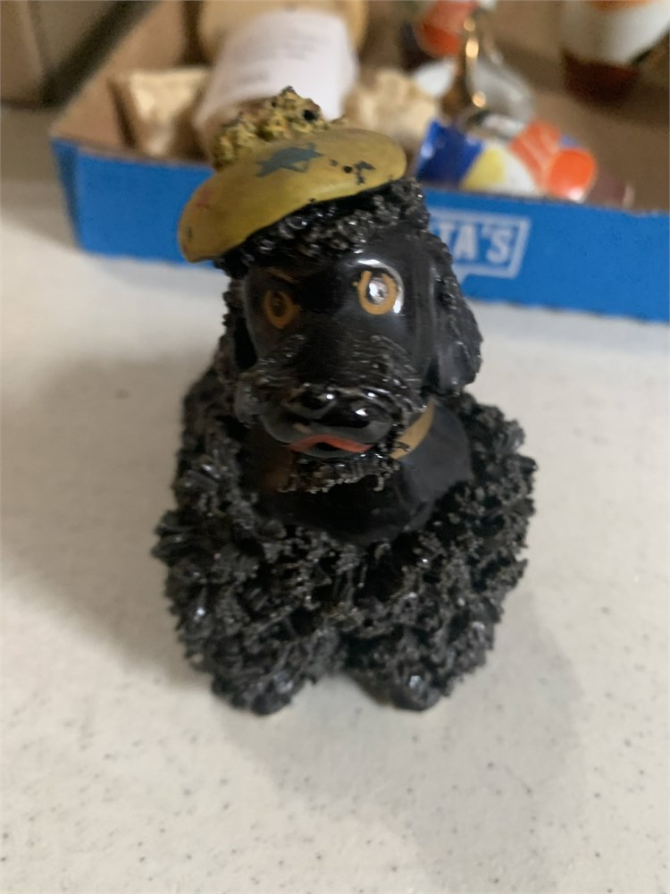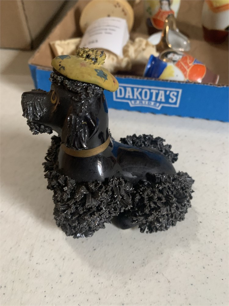 Hand Painted Royal Japan Black Spaghetti Poodle Figurine, Mini Porcelain Basket