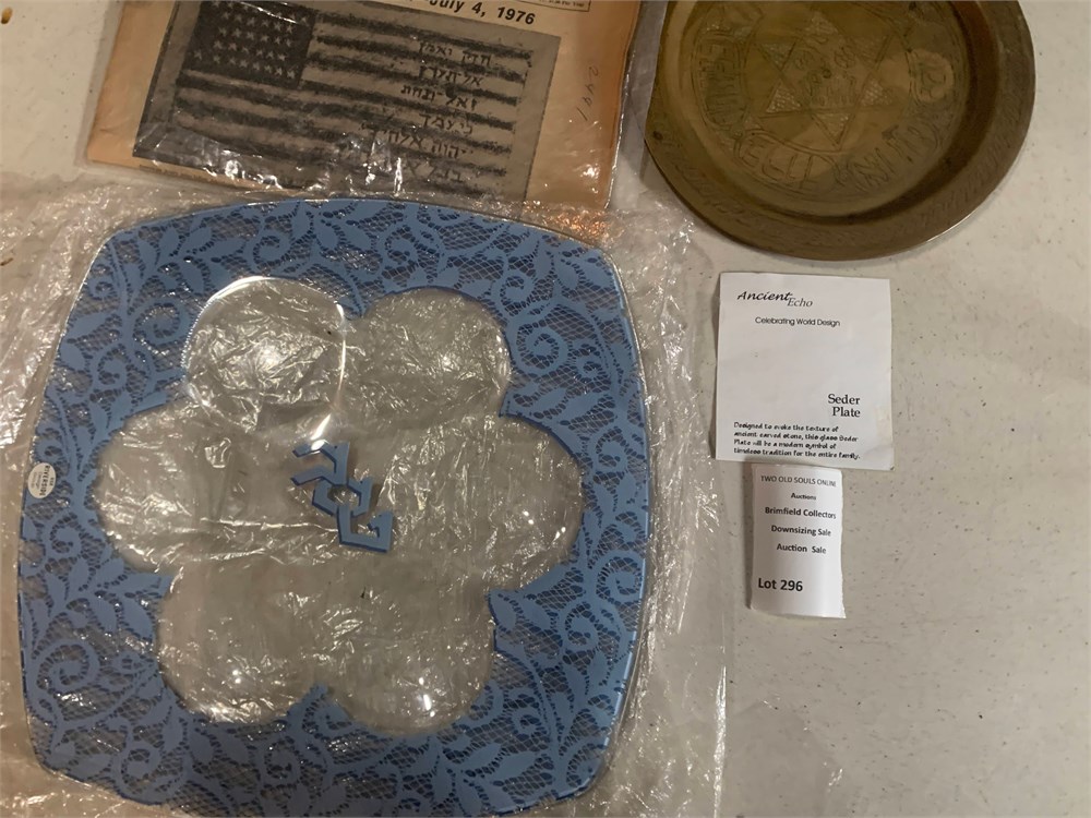 Judaica Star of David Round Brass Tray, Blue Lace Pattern Seder Plate View Watchlist >