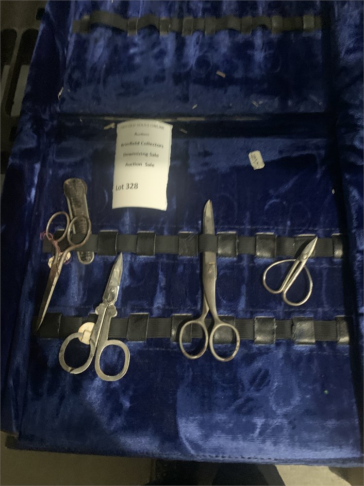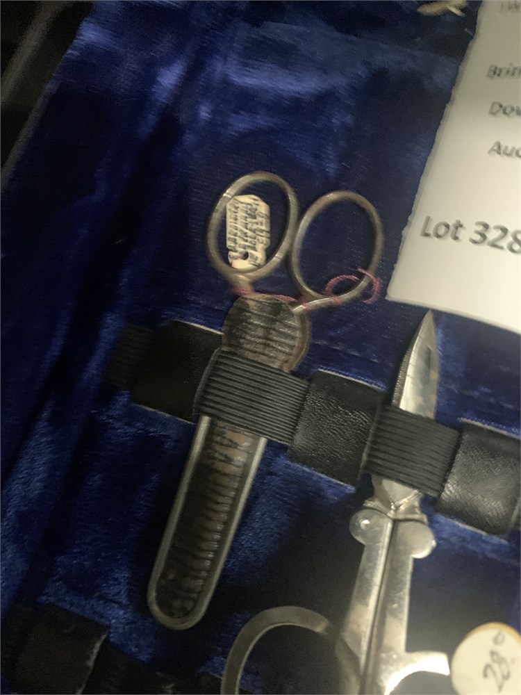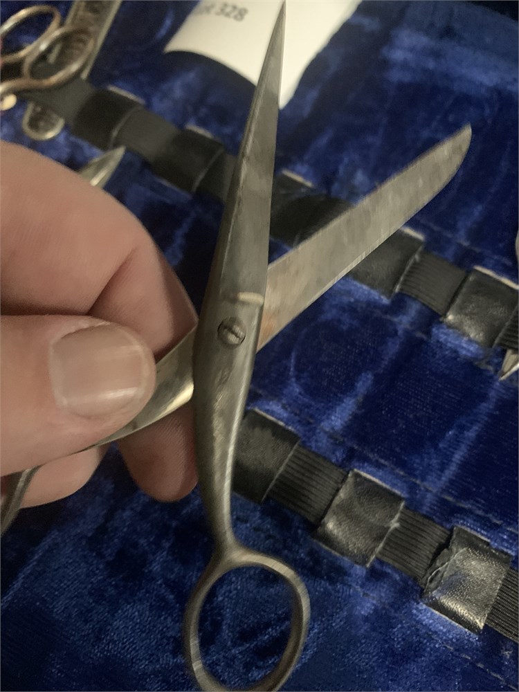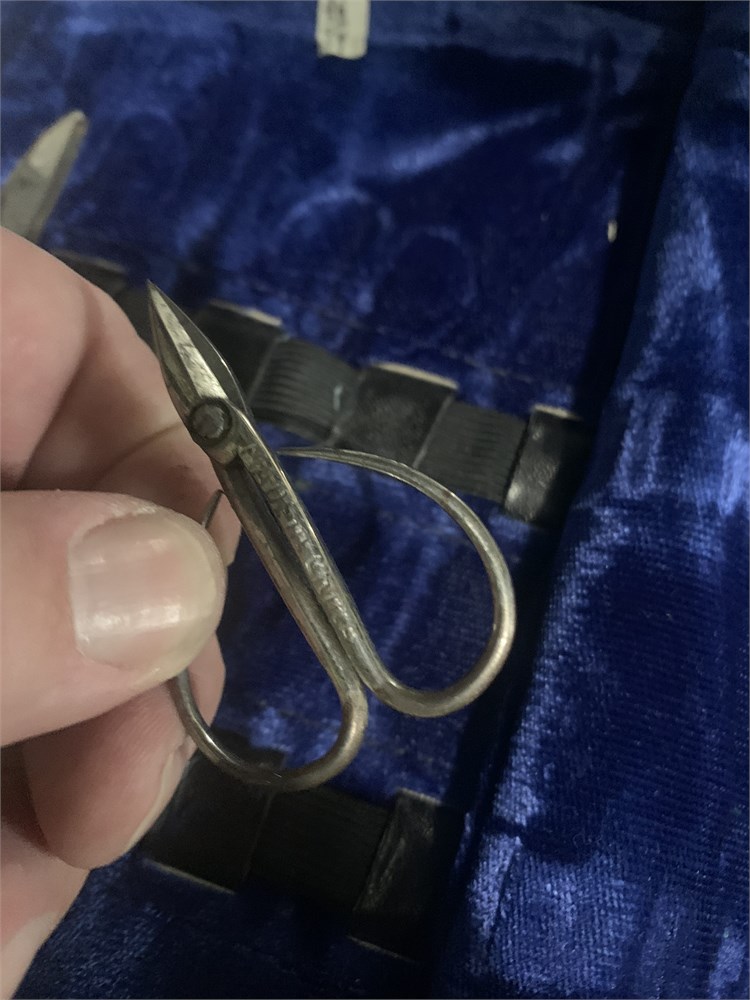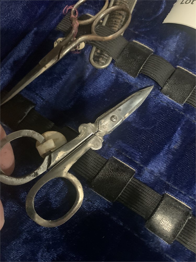 Antique Sewing/Crafting Scissors In Blue Velvet-Lined Case View Watchlist >