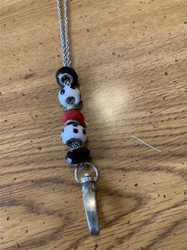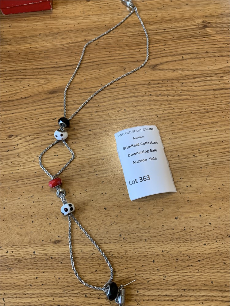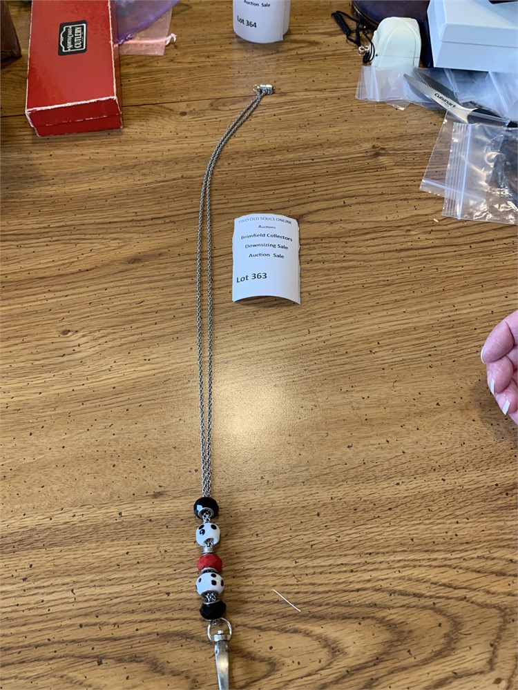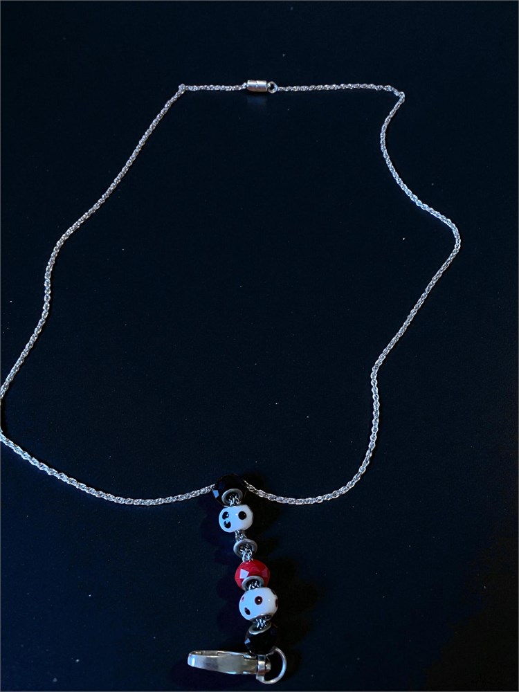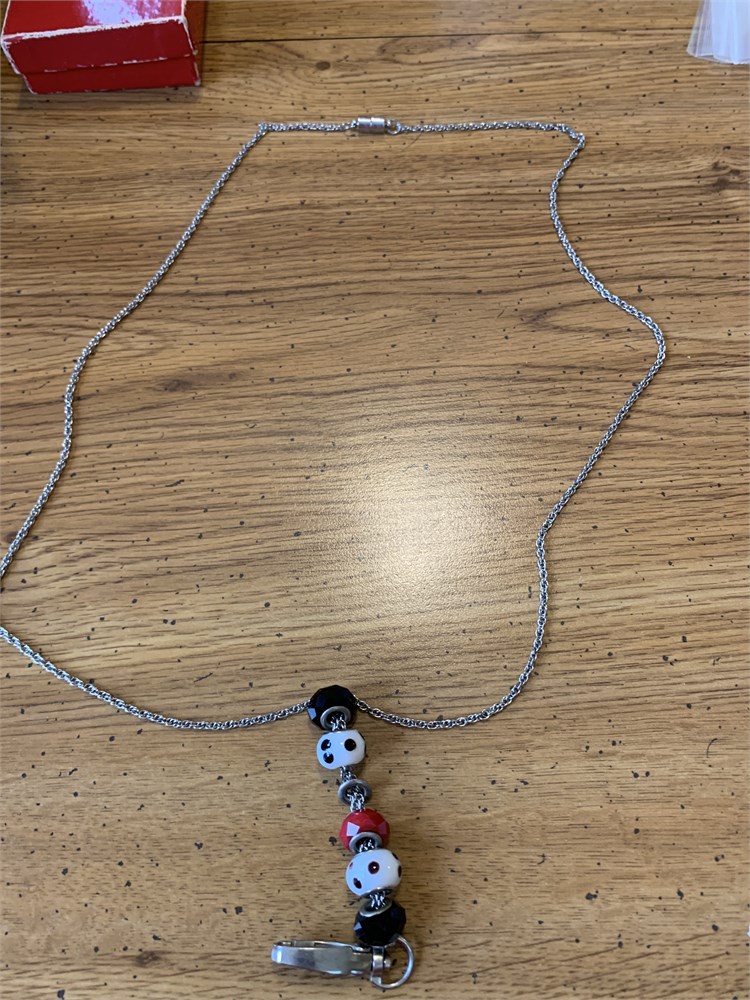 Facets I.D. Badge Holder 37” Chain W/Black, White & Red Art Glass Beads View Watchlist >