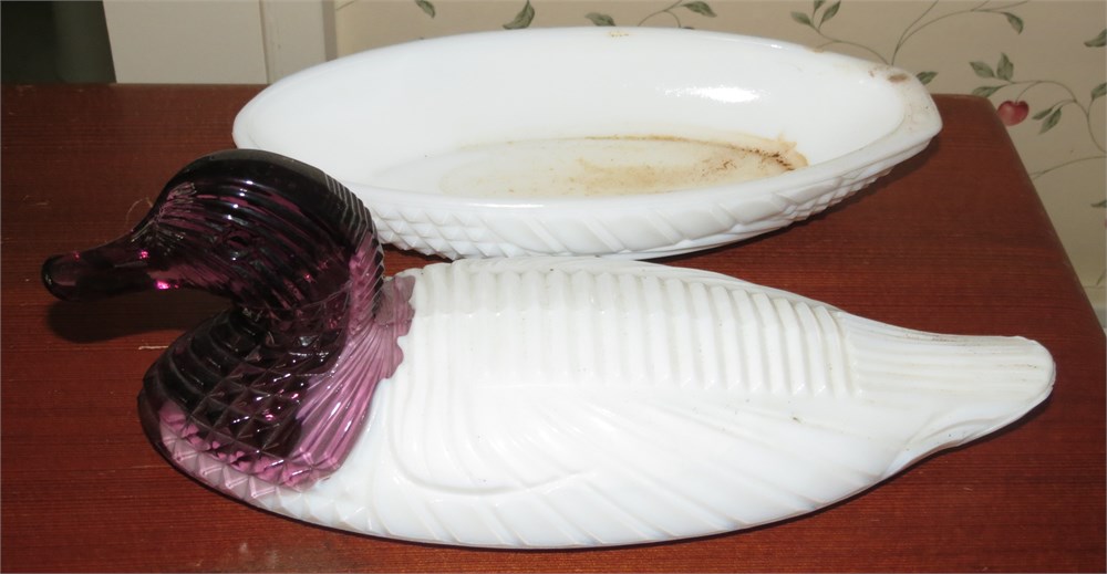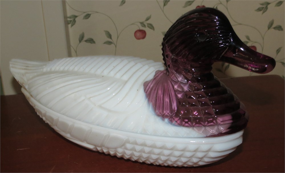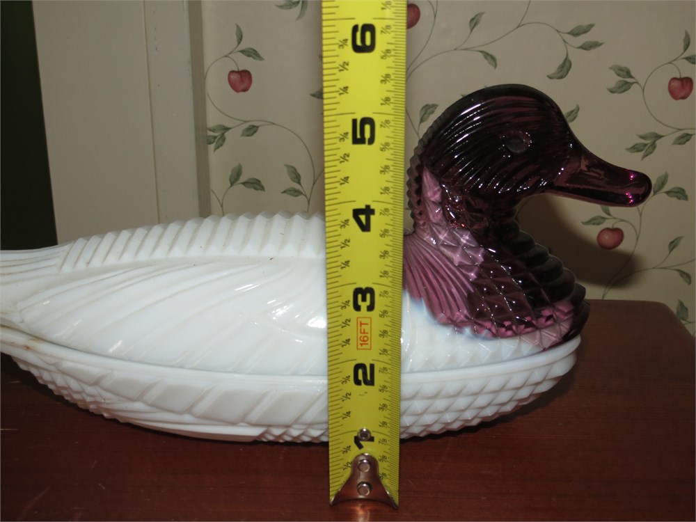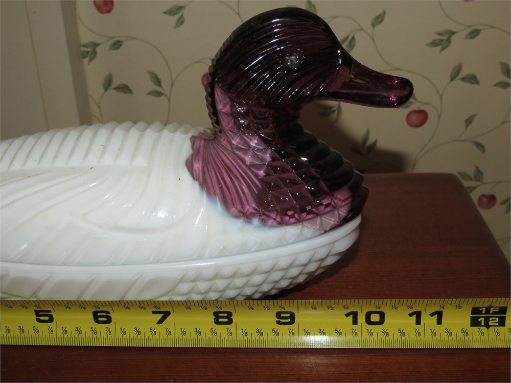 Atterbury Milk Glass Duck With Amethyst Head Dish View Watchlist >