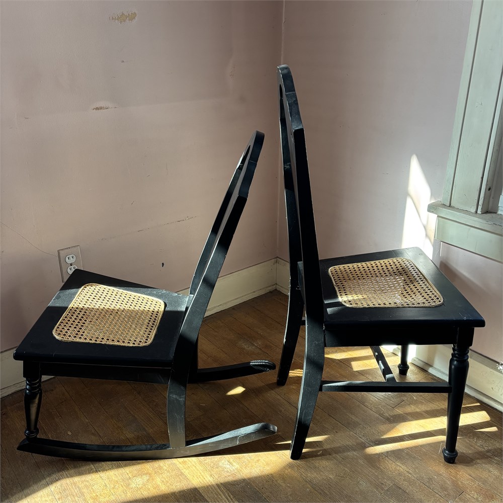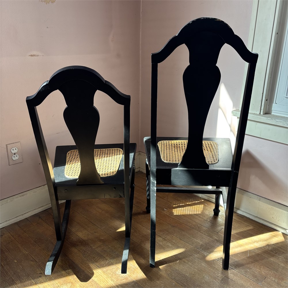 Black Painted Rocking and Accent Chair w/ Cane Seating