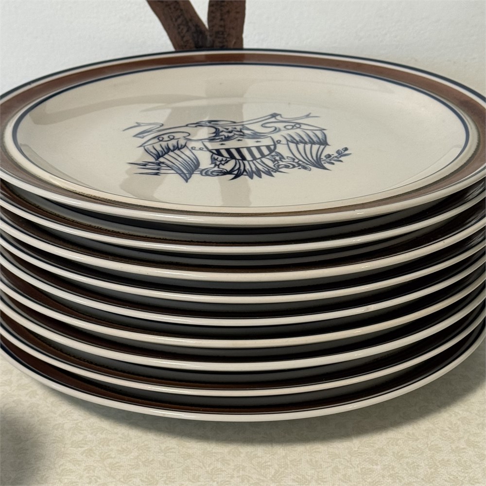 Salem Stoneware Georgetown Eagle & Shield Dinner Plates and Cream/Sugar Dishes