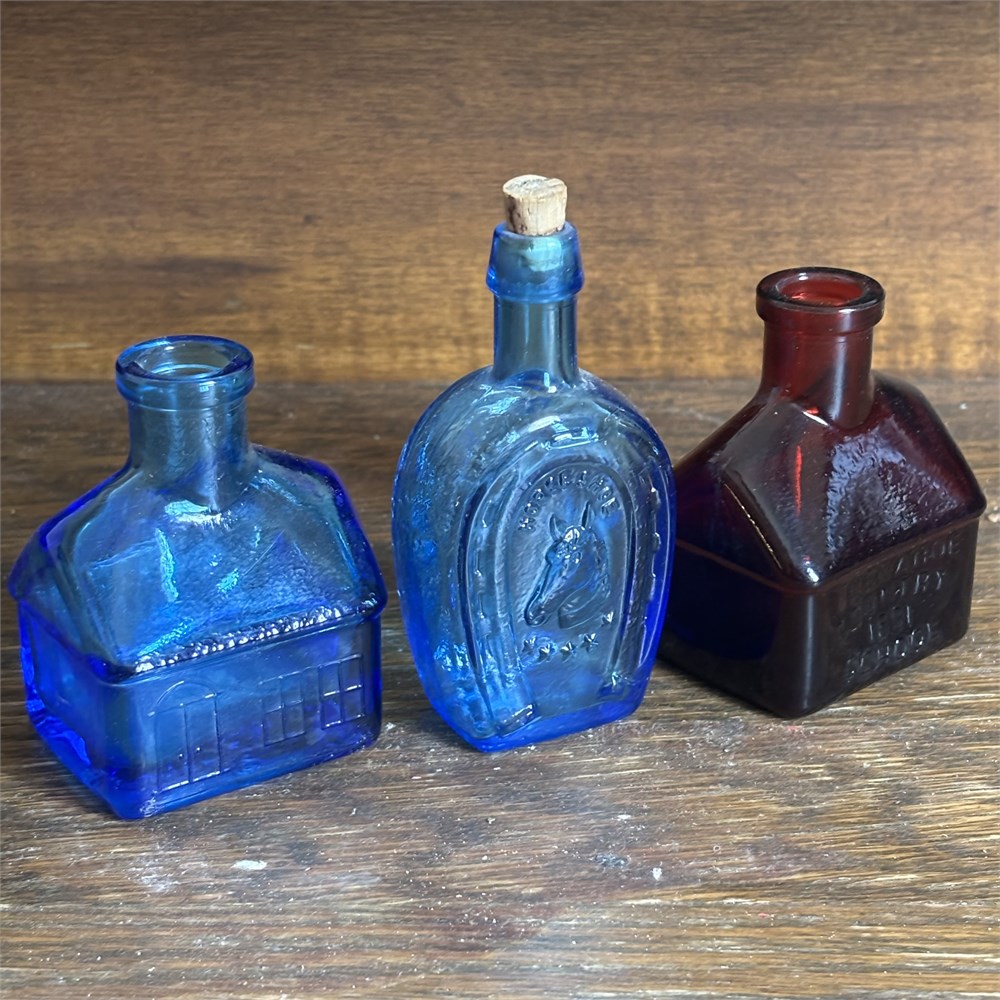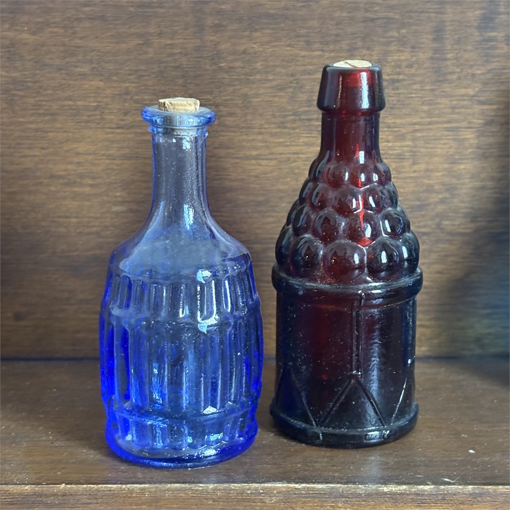 Mixed Collection of 7 Blue & Purple Mini Bottles, Wheaton and More