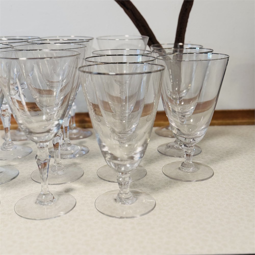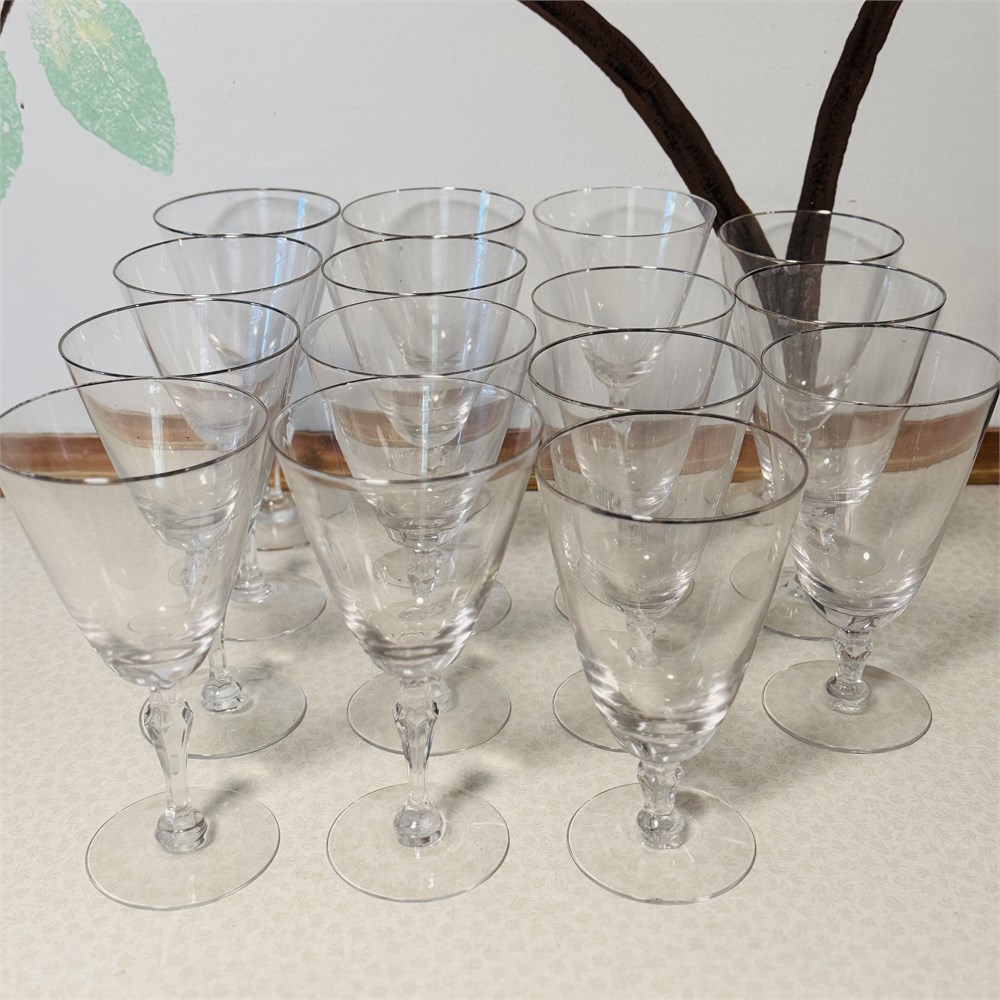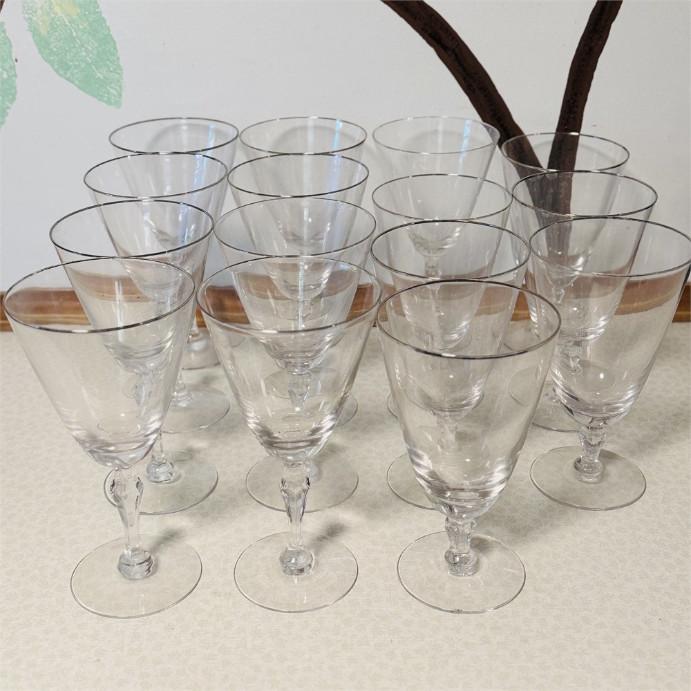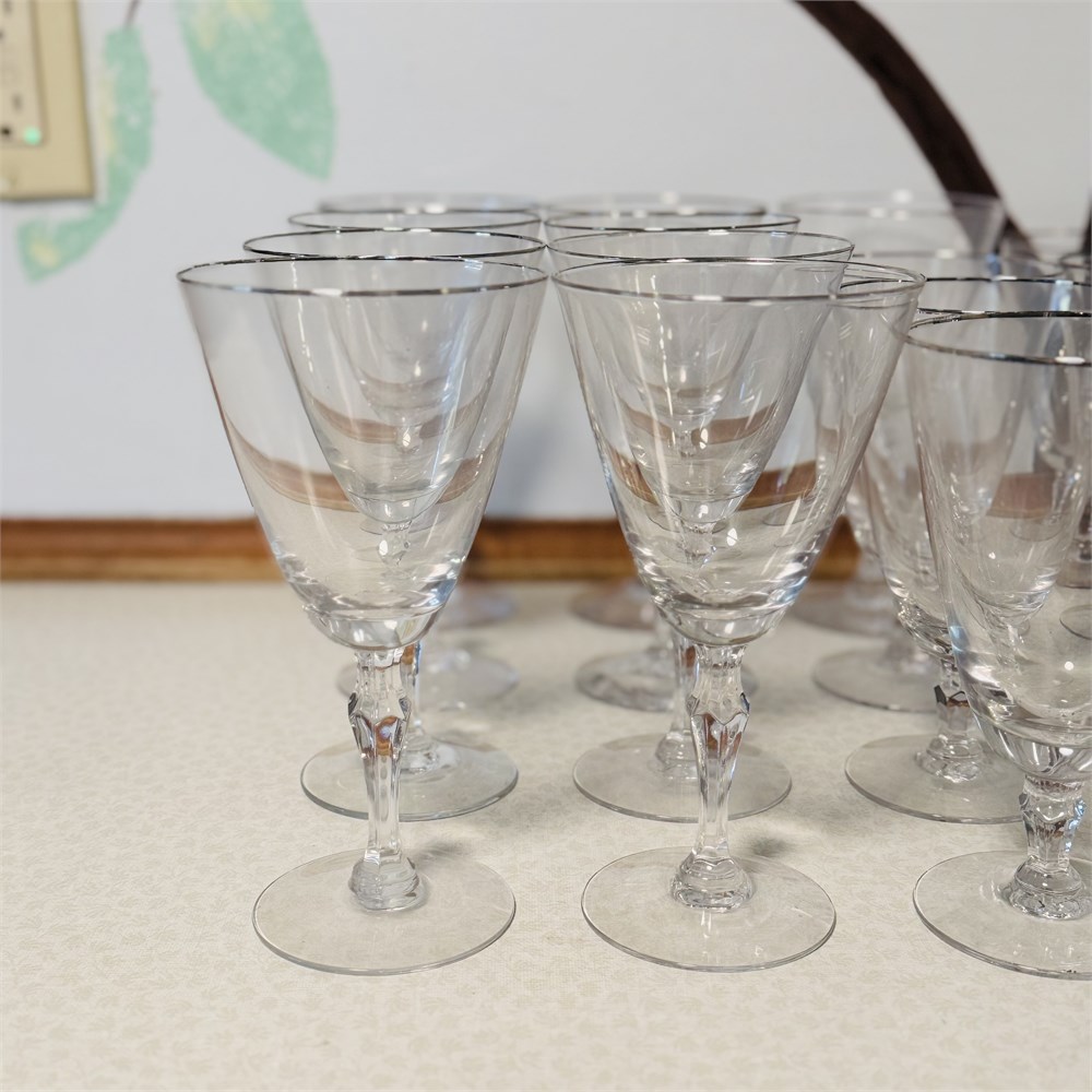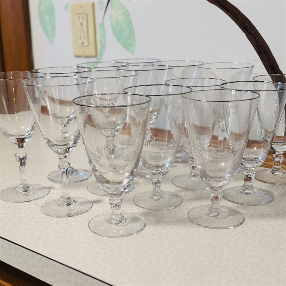 Fostoria Engagement Platinum Rim Water Goblets (6) & Wine Glasses (9)