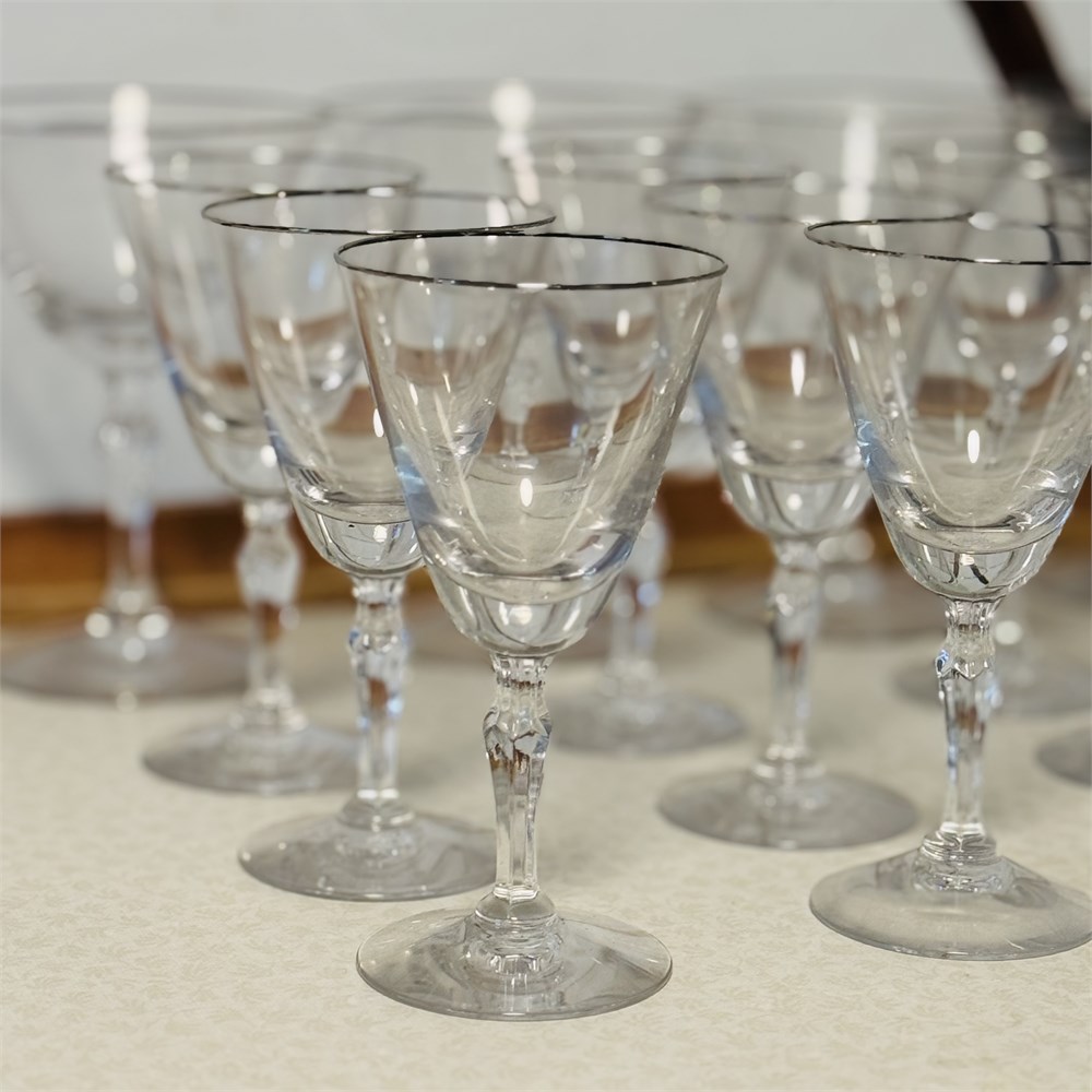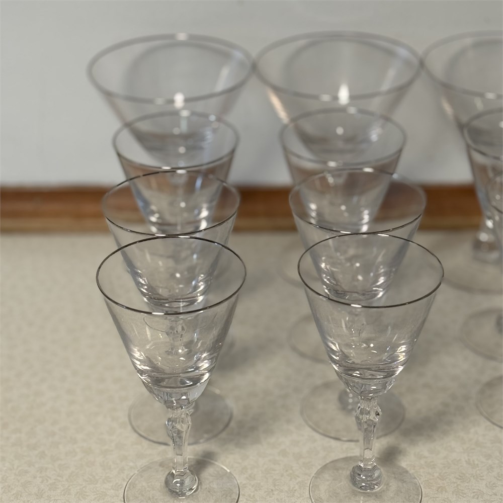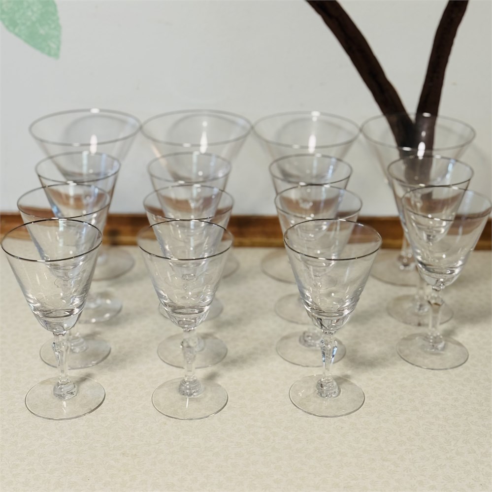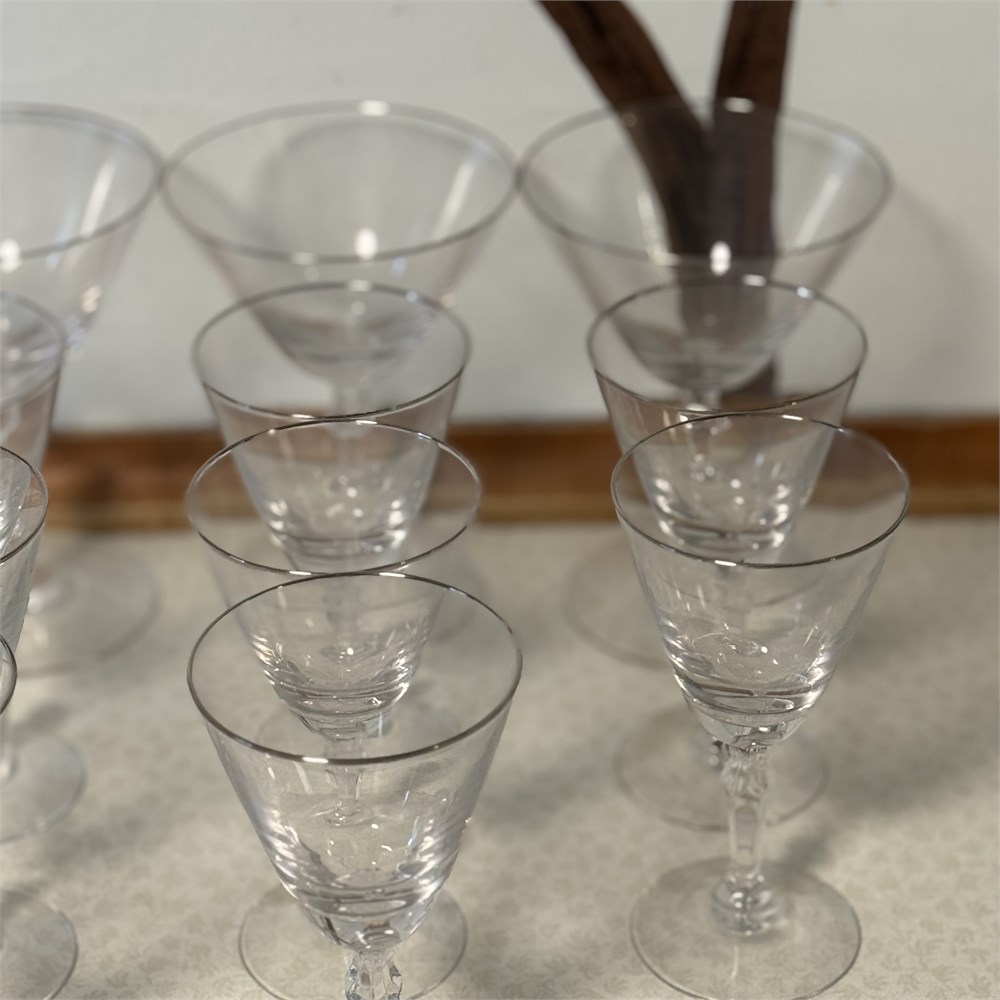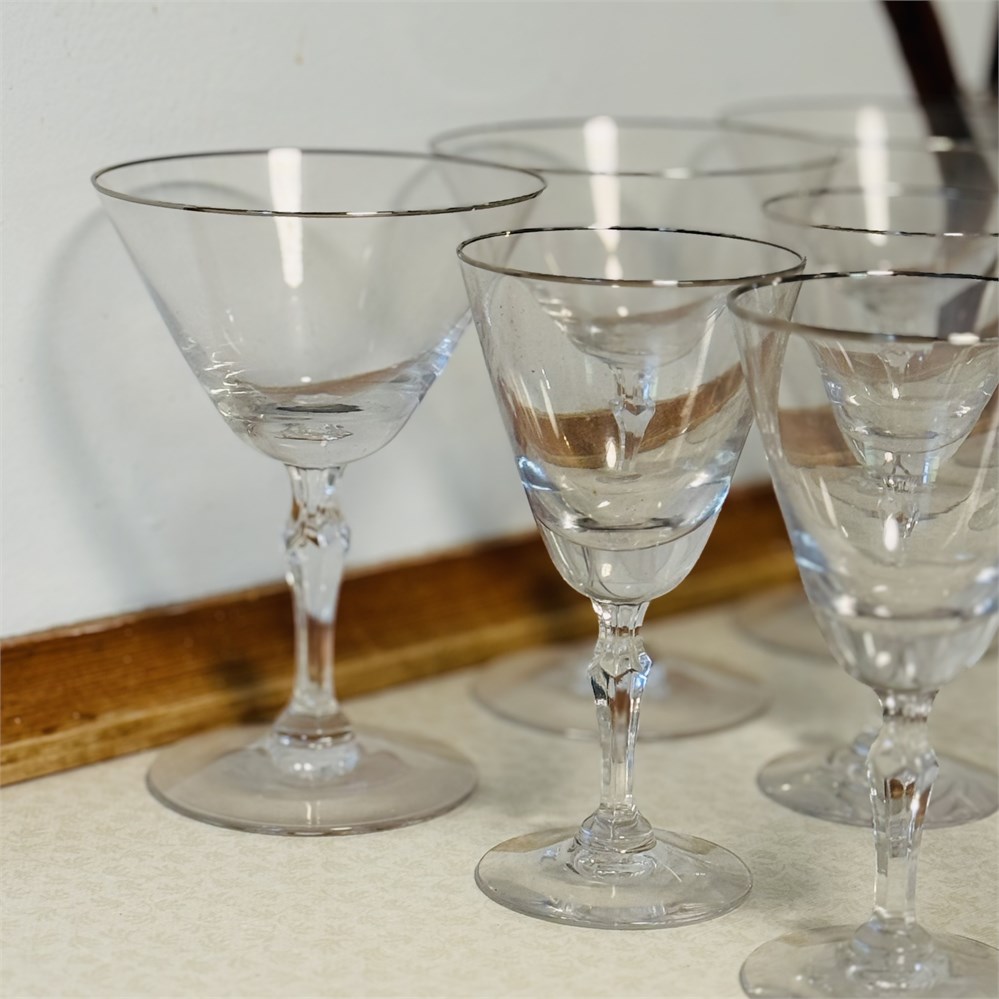 Fostoria Engagement Platinum Rim Dessert Liqueur (11) & Martini Glasses (4)