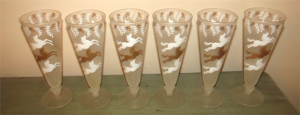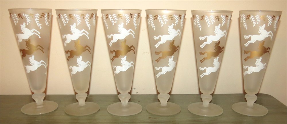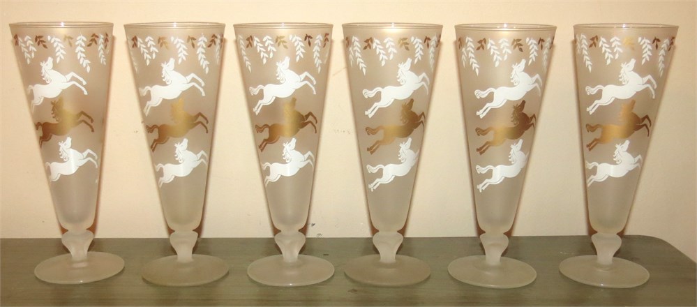 Vintage Libbey "Calvacade" Frosted Pilsner Glasses View Watchlist >