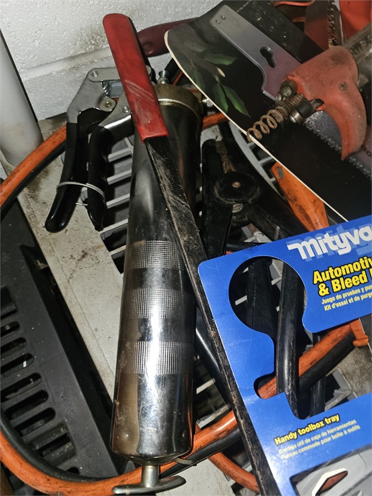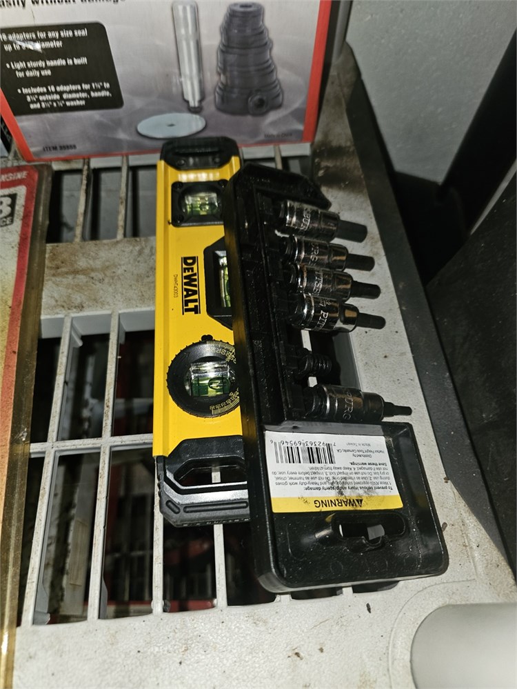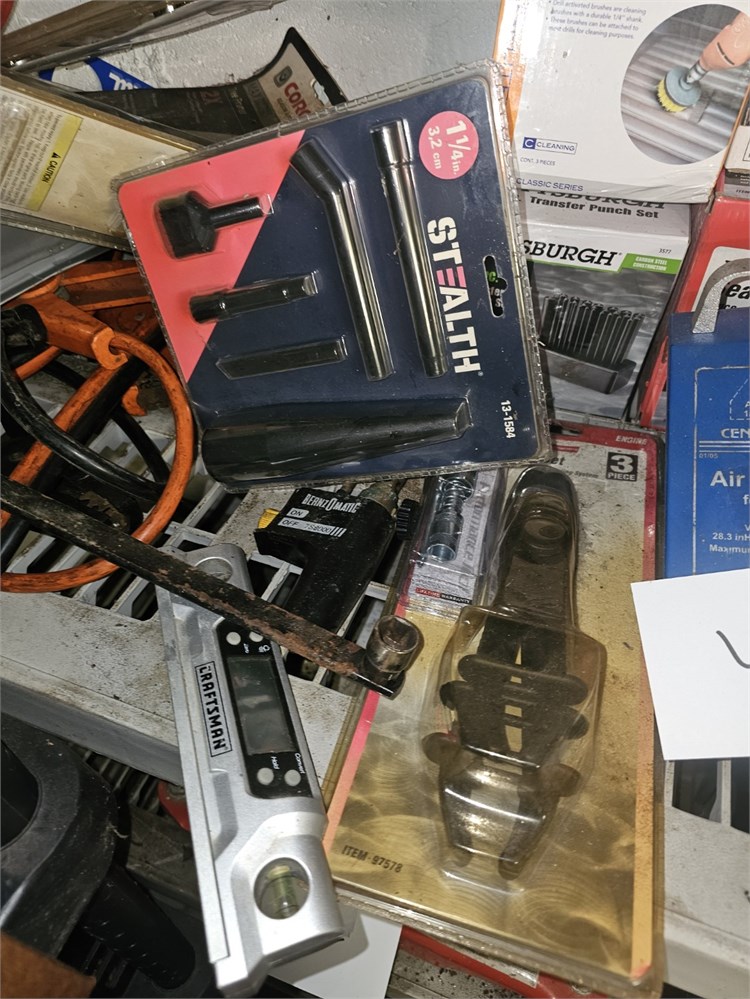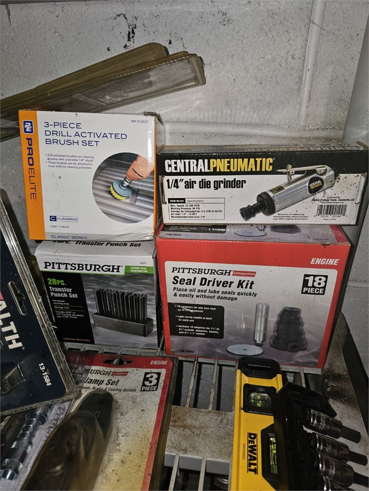 Shelf Cleanout- Drain Snake, Air Die Grinder, Seal Driver Kit, Air Vac Pump, Belt Kit & Much More