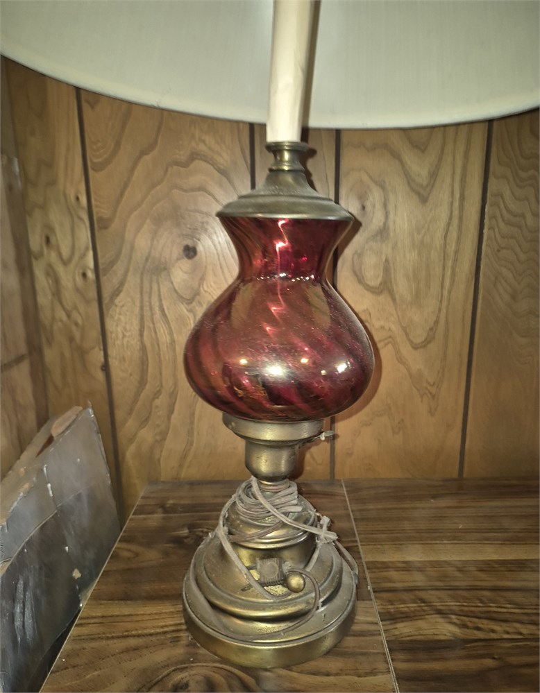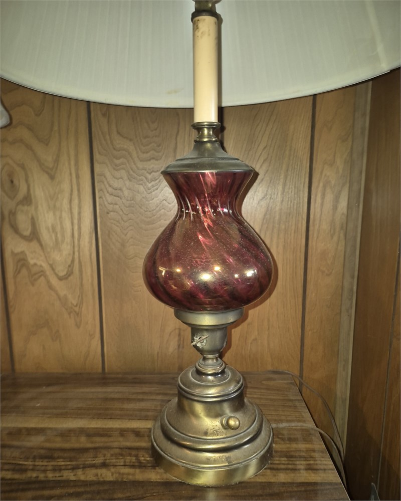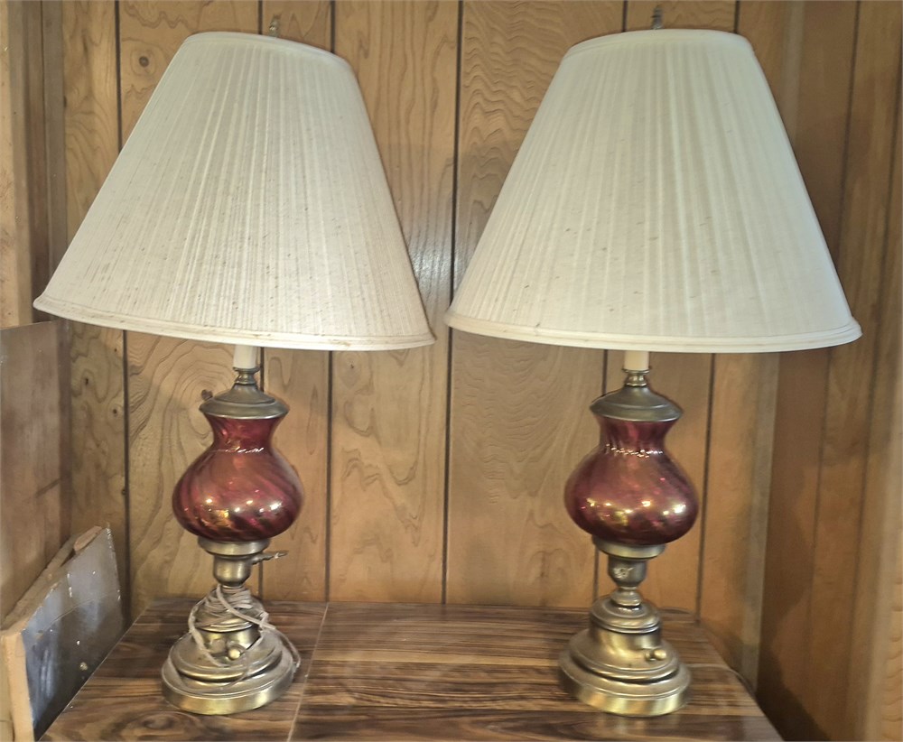 Vintage Pair of Cranberry Glass & Brass Lamps View Watchlist >