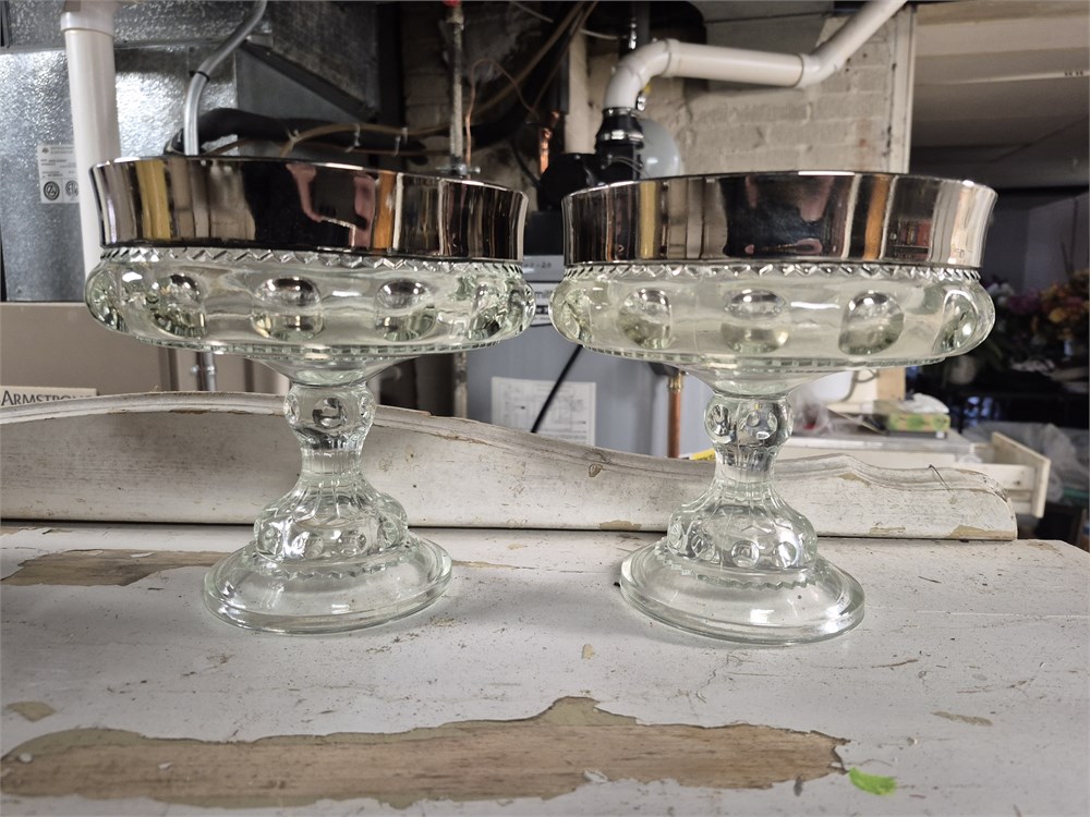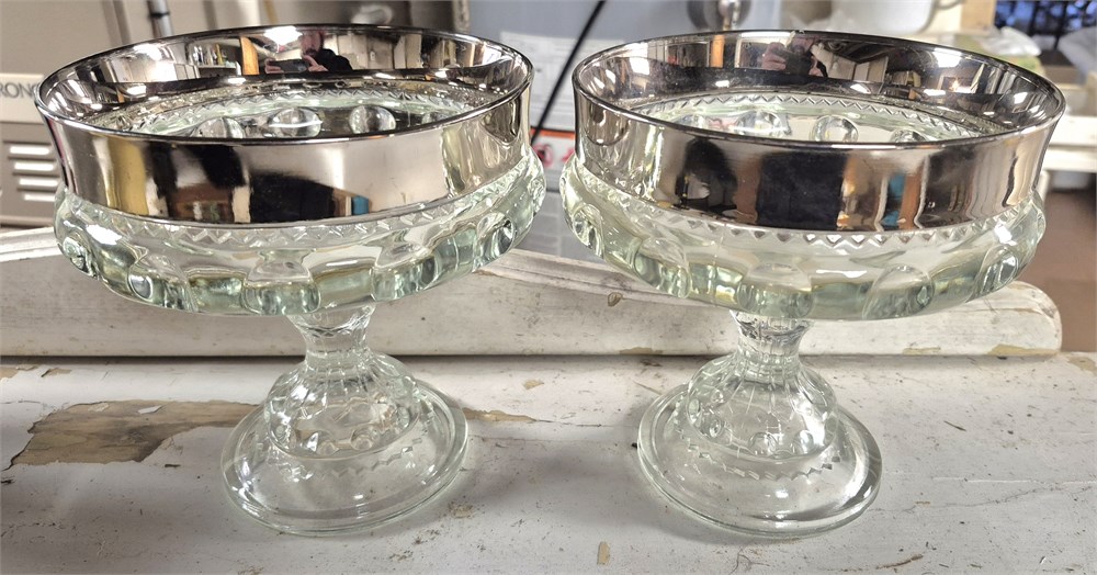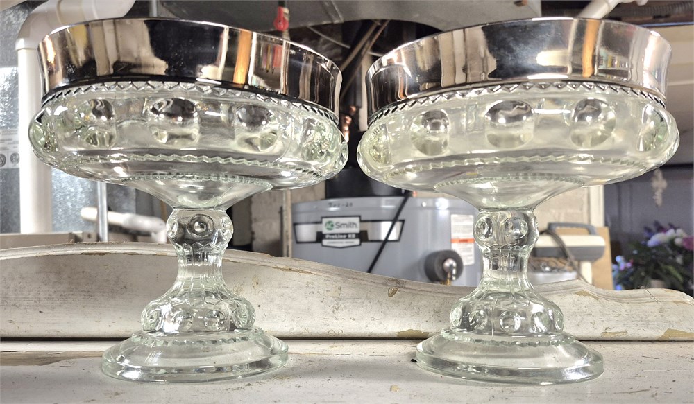 Indiana Glass Kings Crown Clear Compote Thumbprint Pedestal Dish View Watchlist >