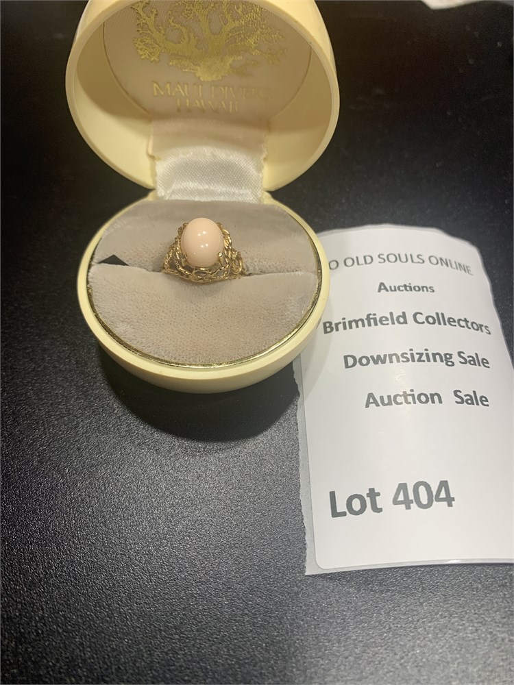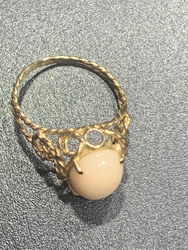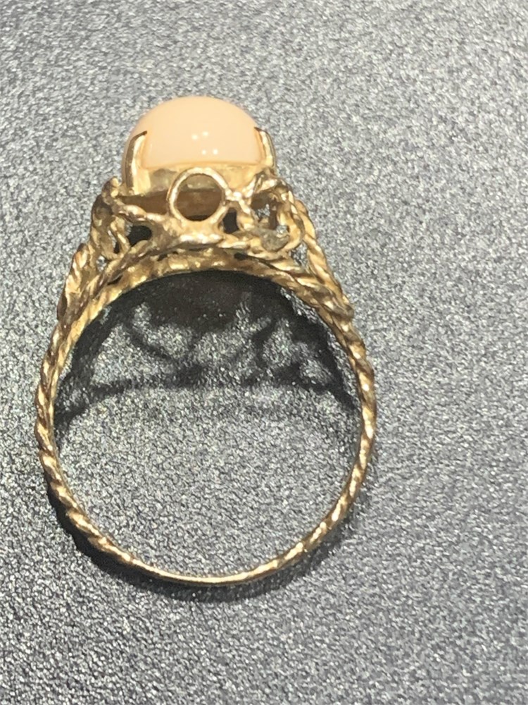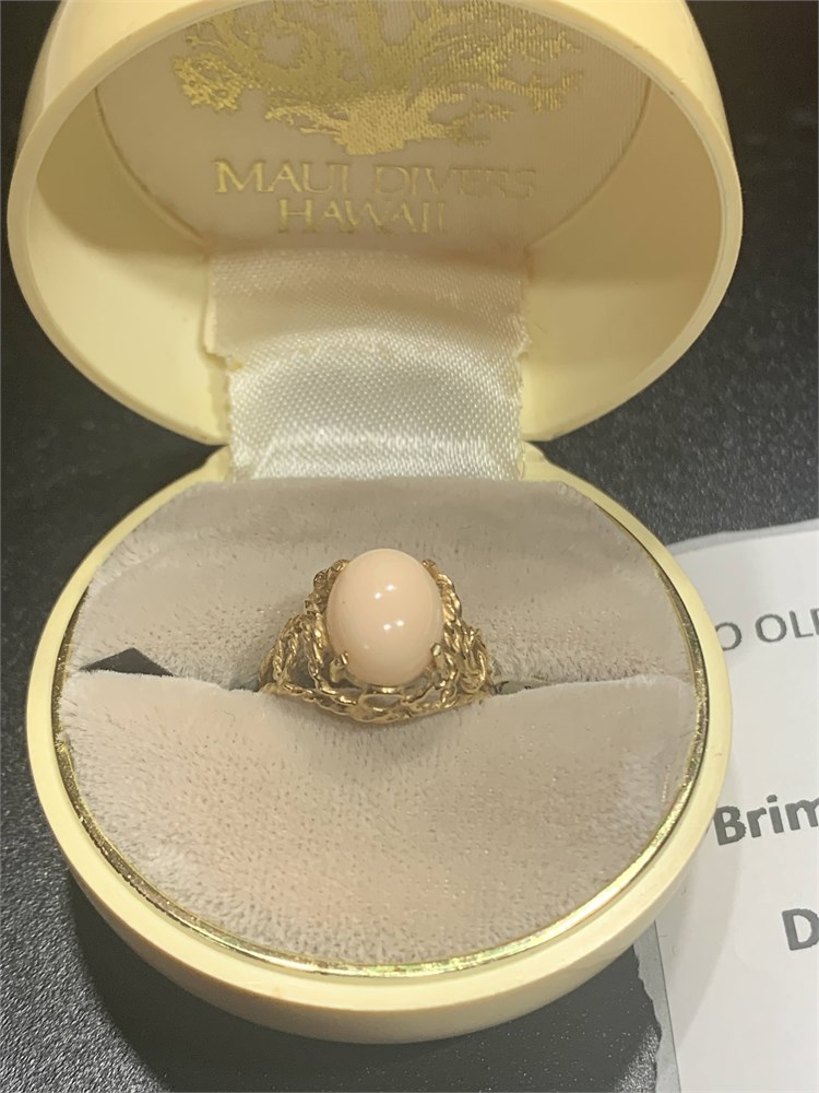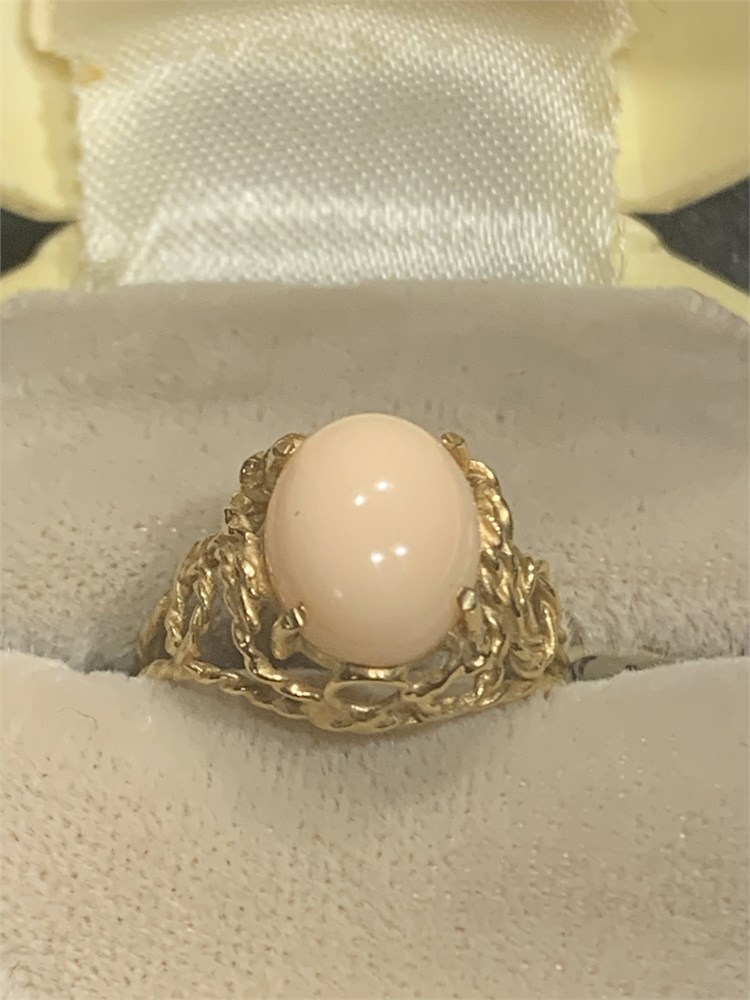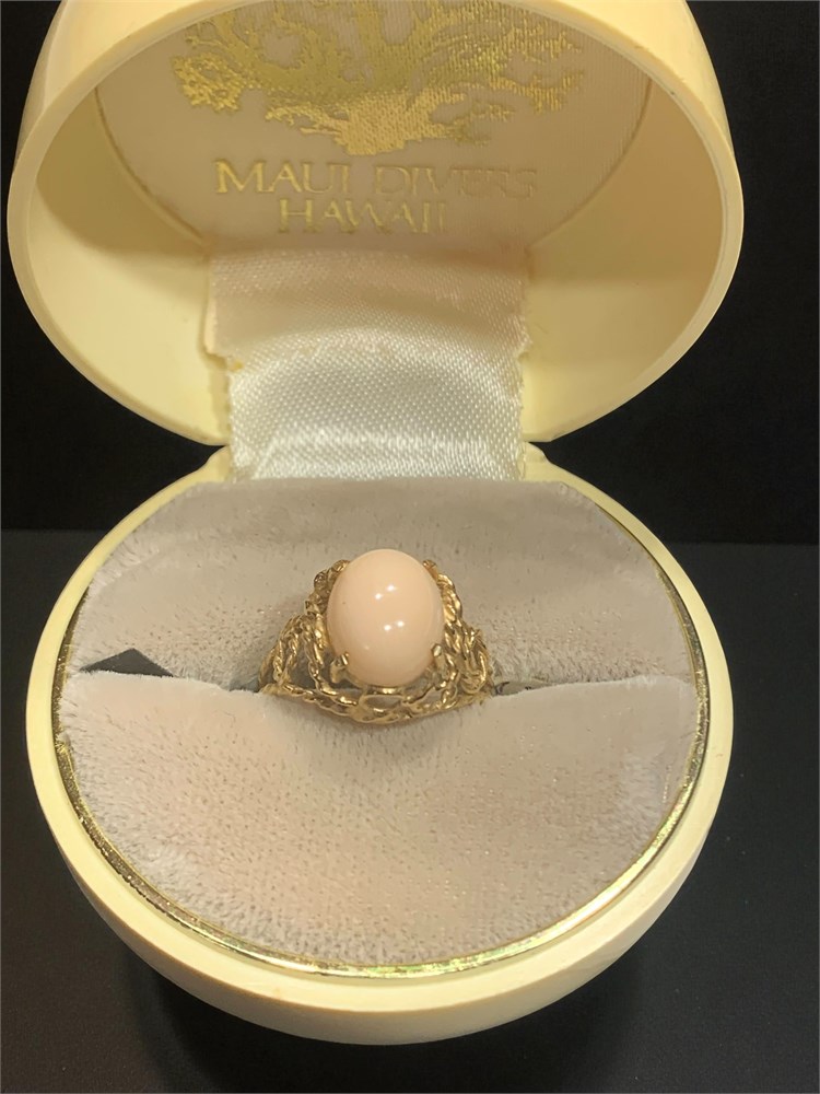 14k Gold Maui Diners Hawaii Angel Skin Coral Cabochon Cocktail Ring Size 5 View Watchlist >