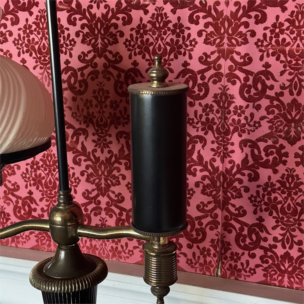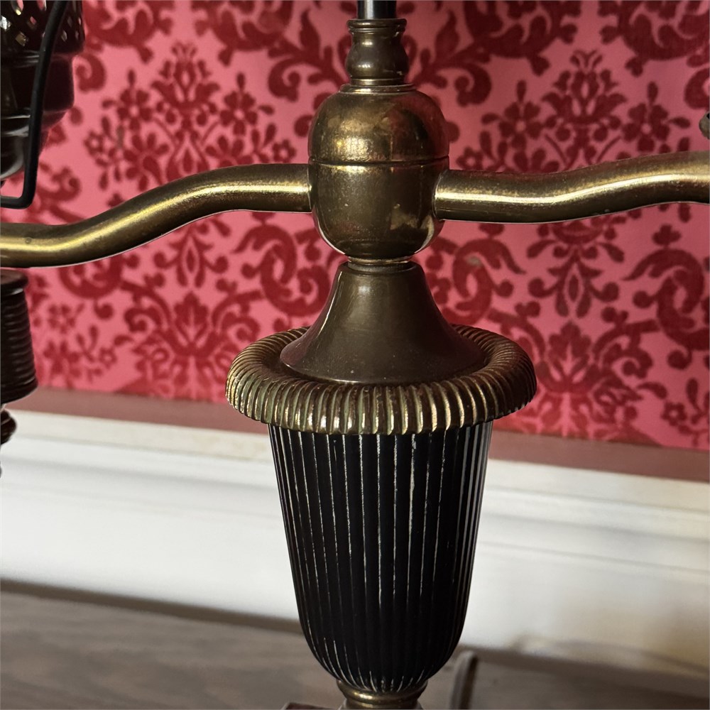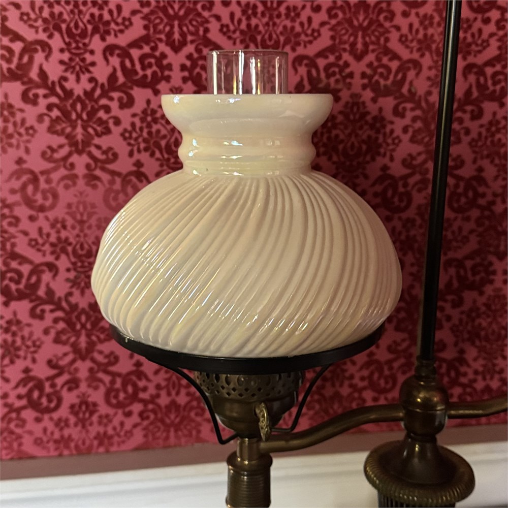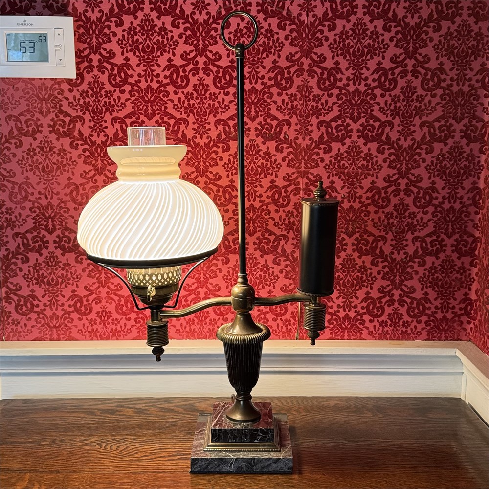 Early American Brass and Marble Student Lamp w/ Milk Glass Shade