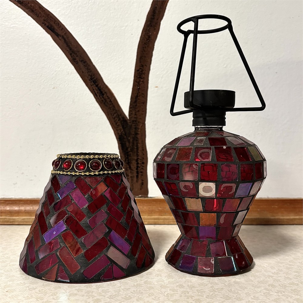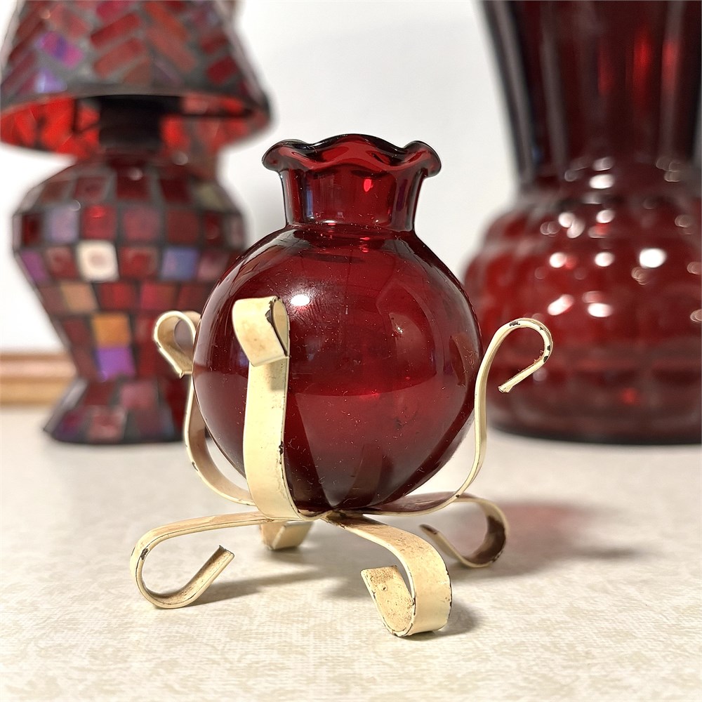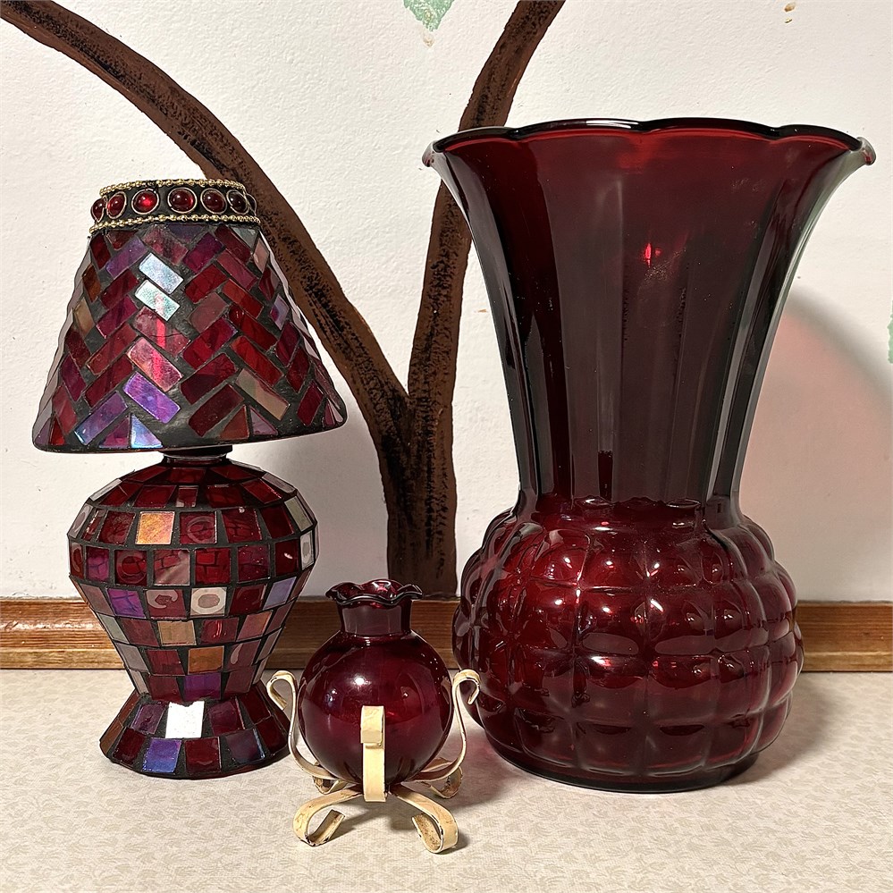 Decorative Red Glass Bundle w/ Candle Lamp and Large Vase (8.75"T) View Watchlist >