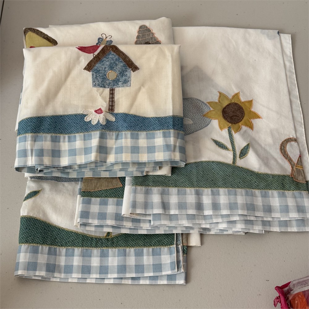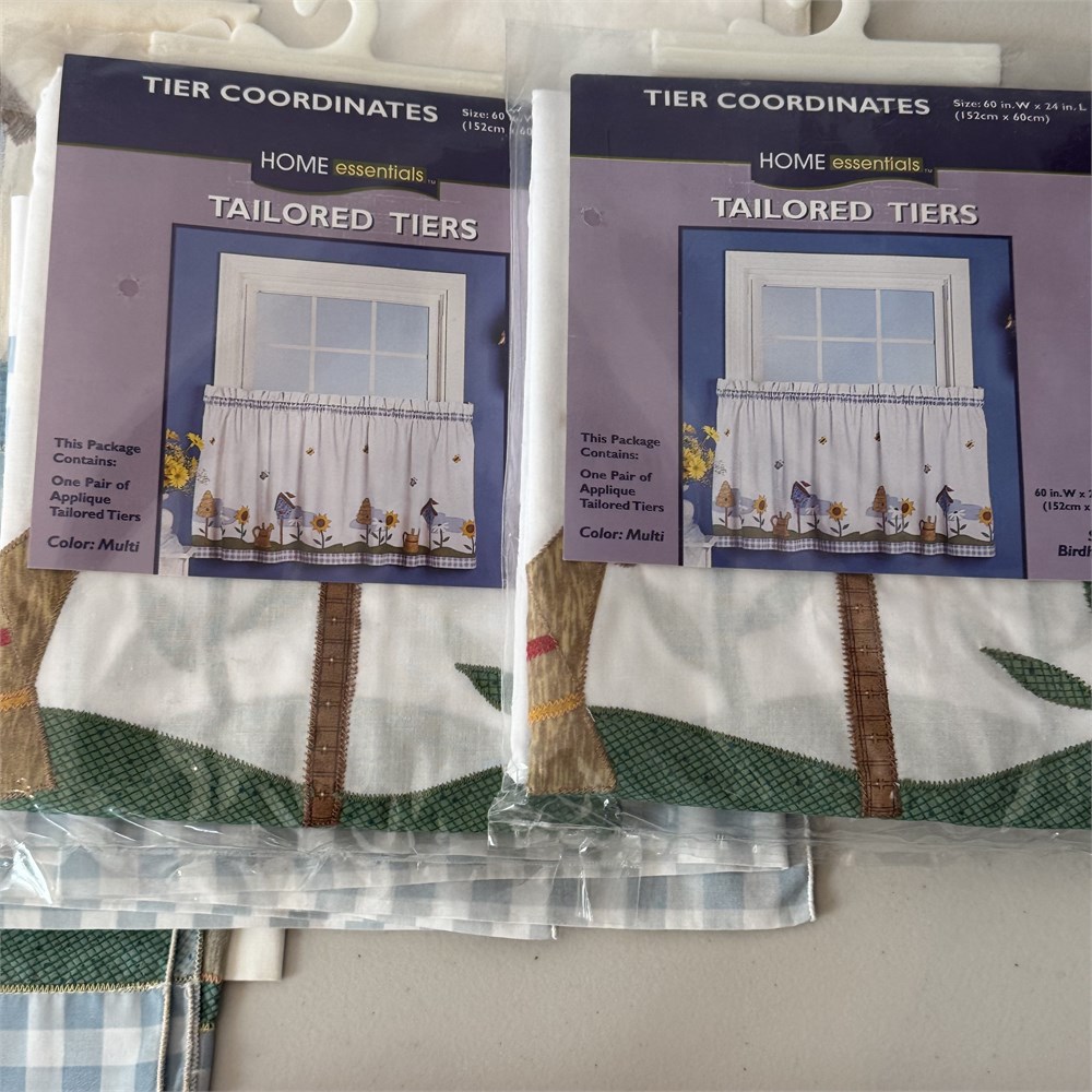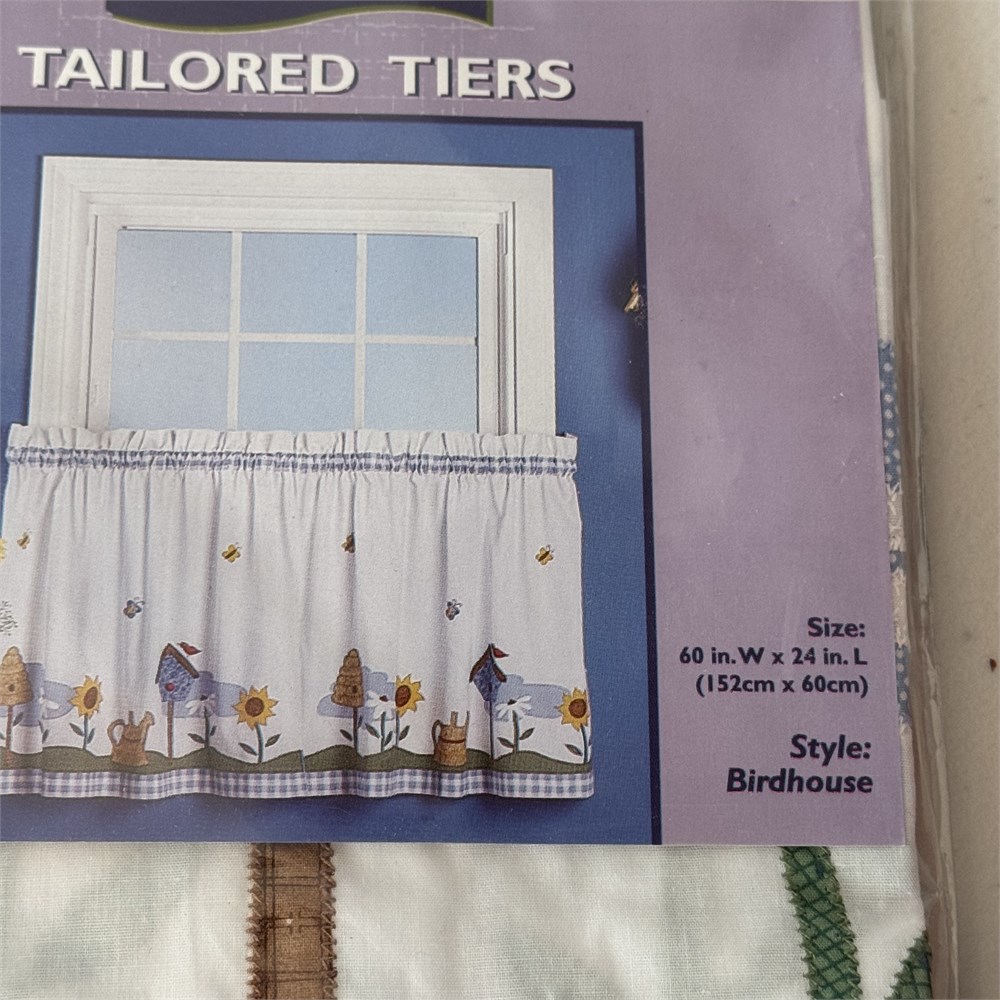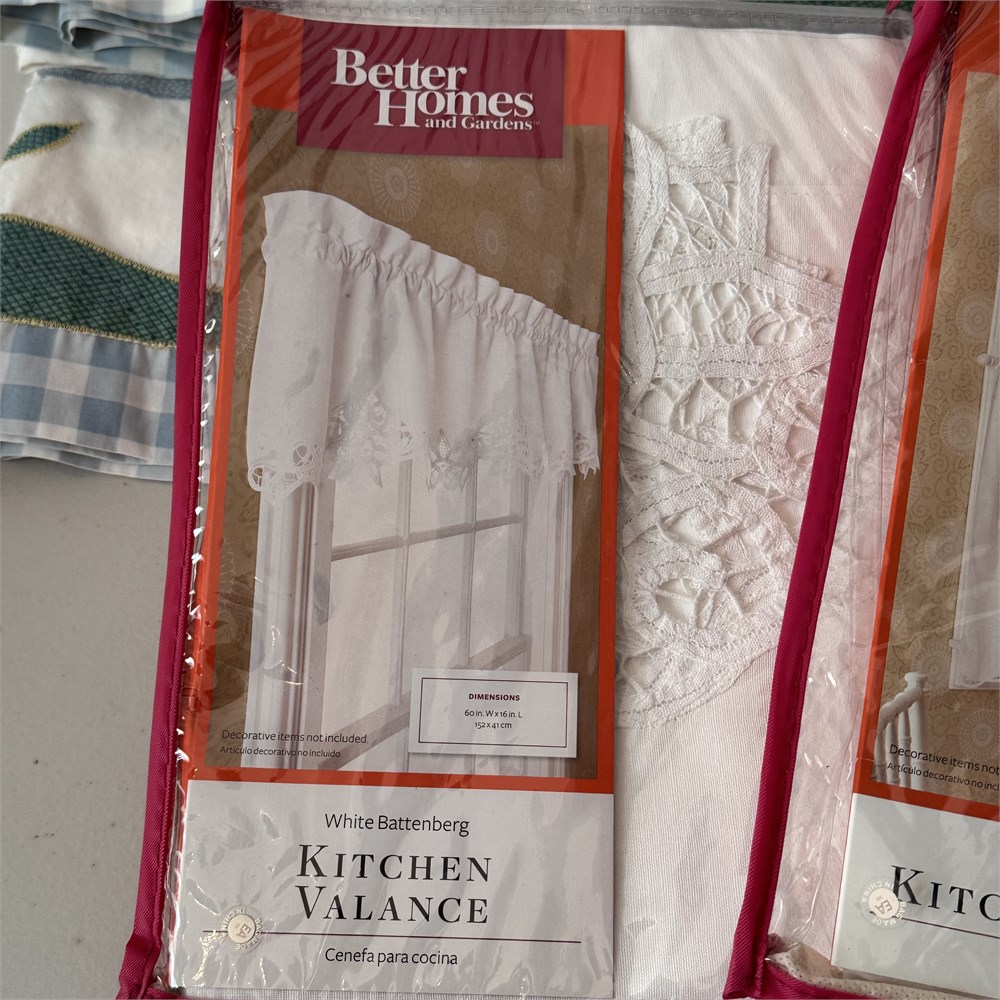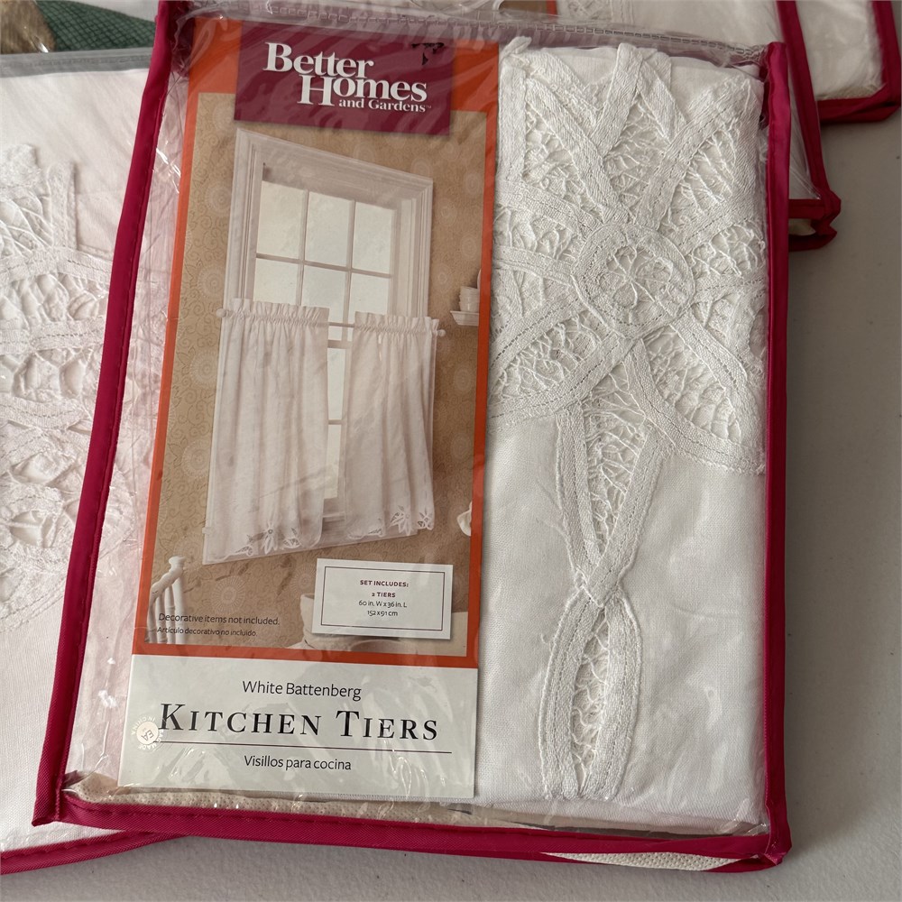 New & Used Kitchen Curtain Tiers & Valances - White Battenberg & Birdhouse Motif