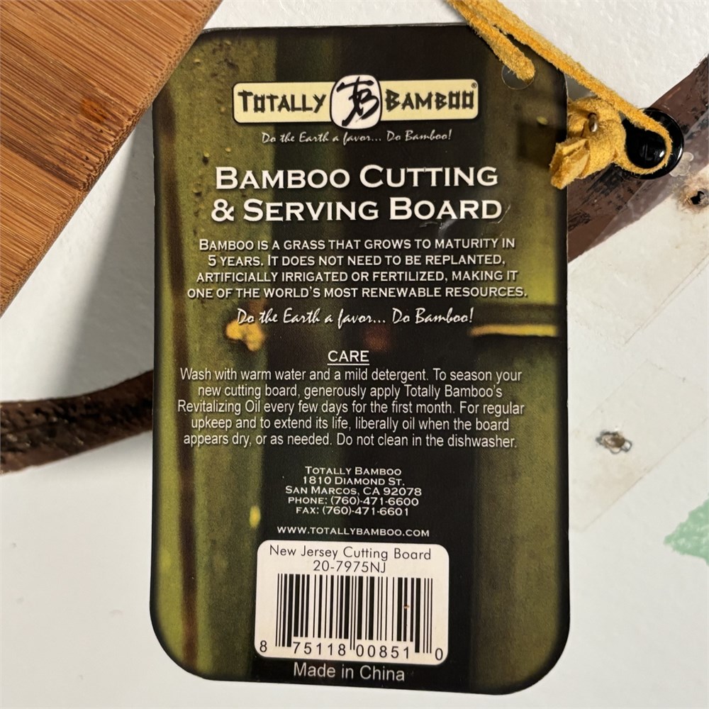 Like New State of New Jersey Shaped Bamboo Cutting & Serving Board