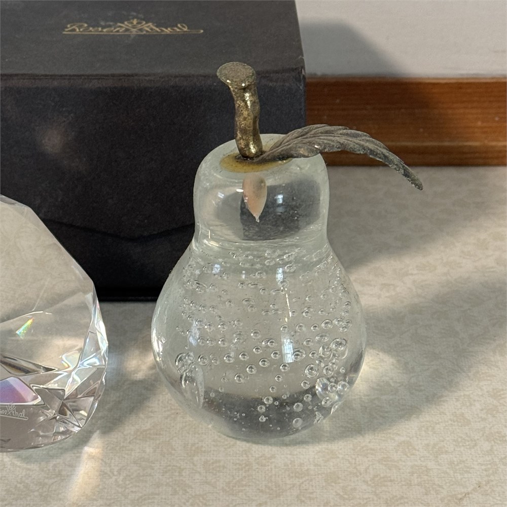 Rosenthal Large Diamond Paperweight and Bubble Glass Pear Paperweight