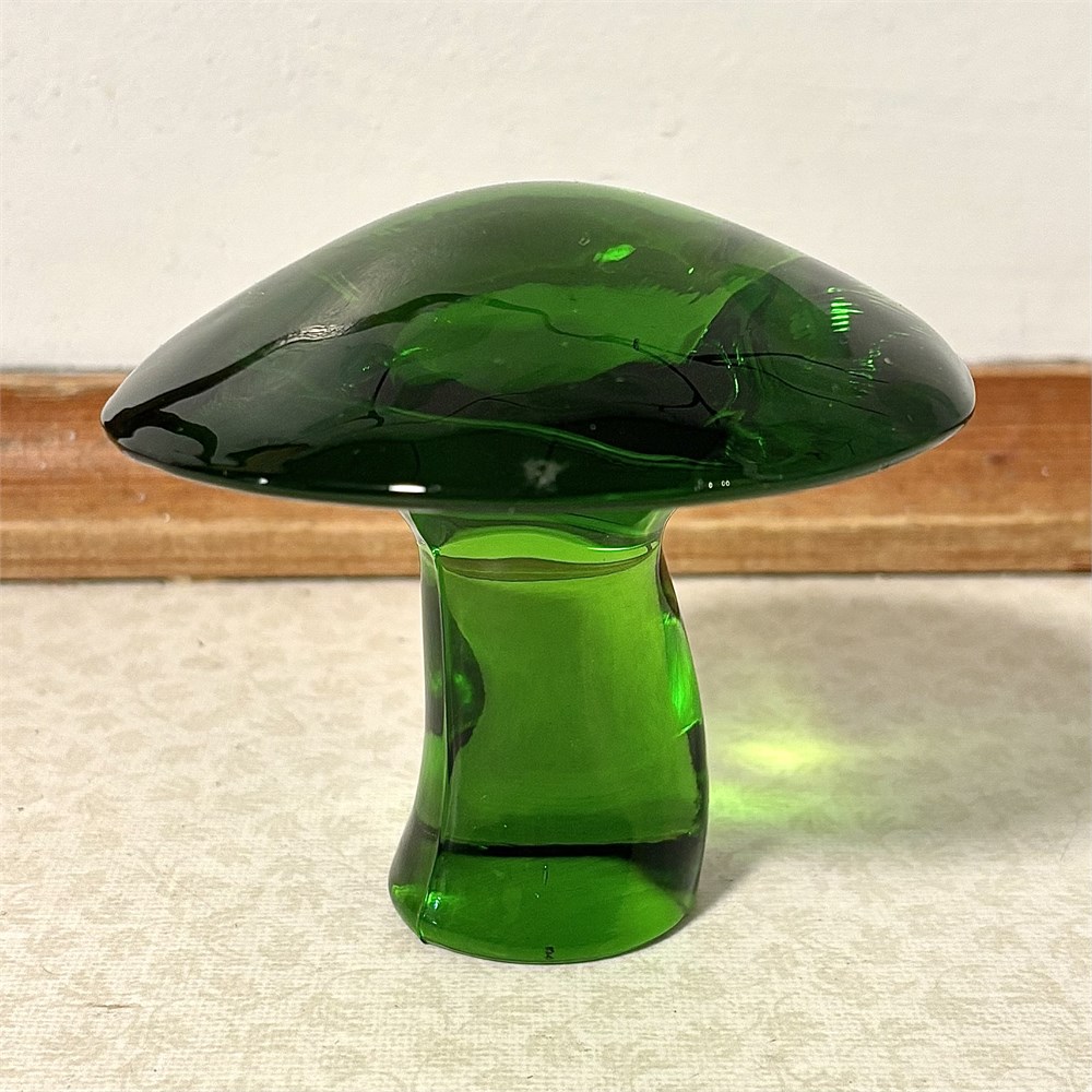 Emerald Green Art Glass Mushroom Paperweight - 3"T View Watchlist >