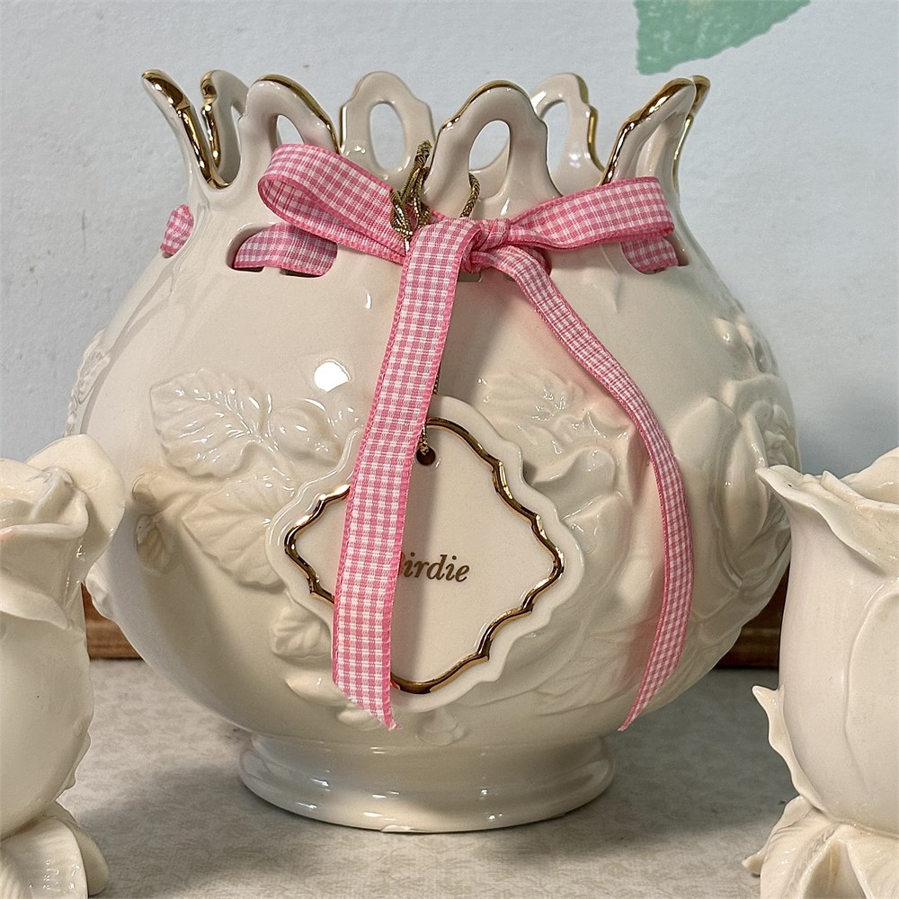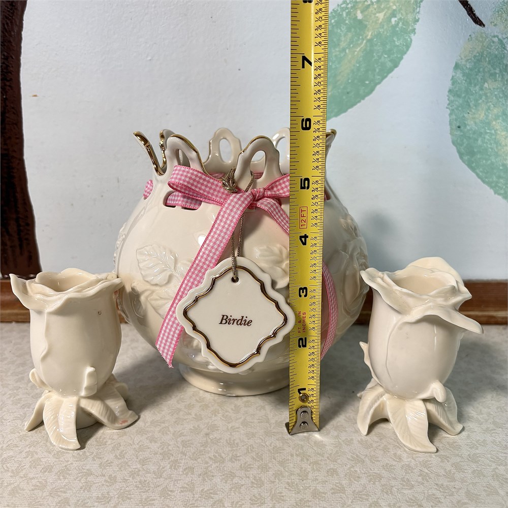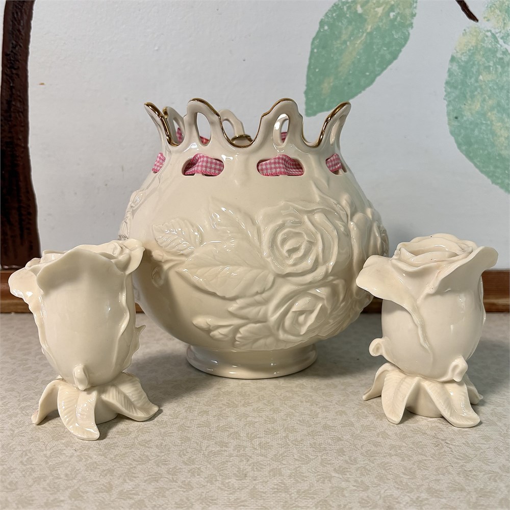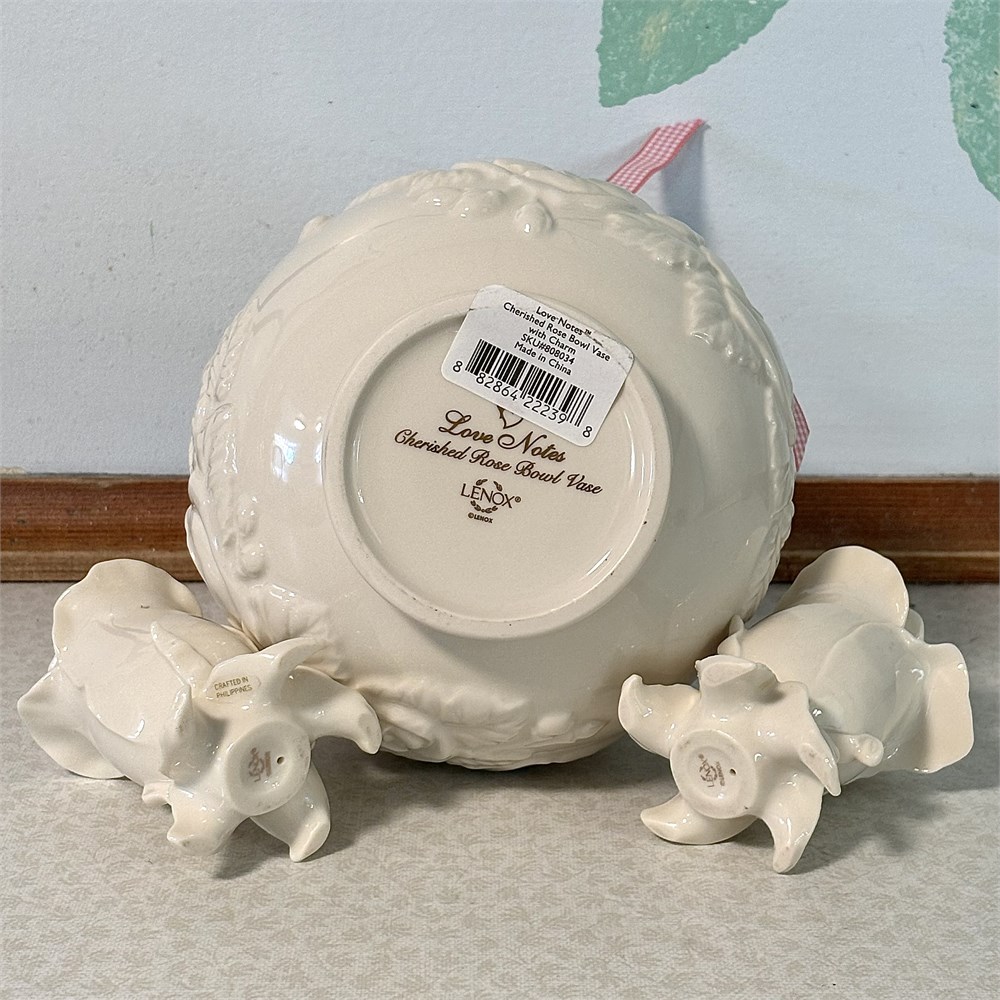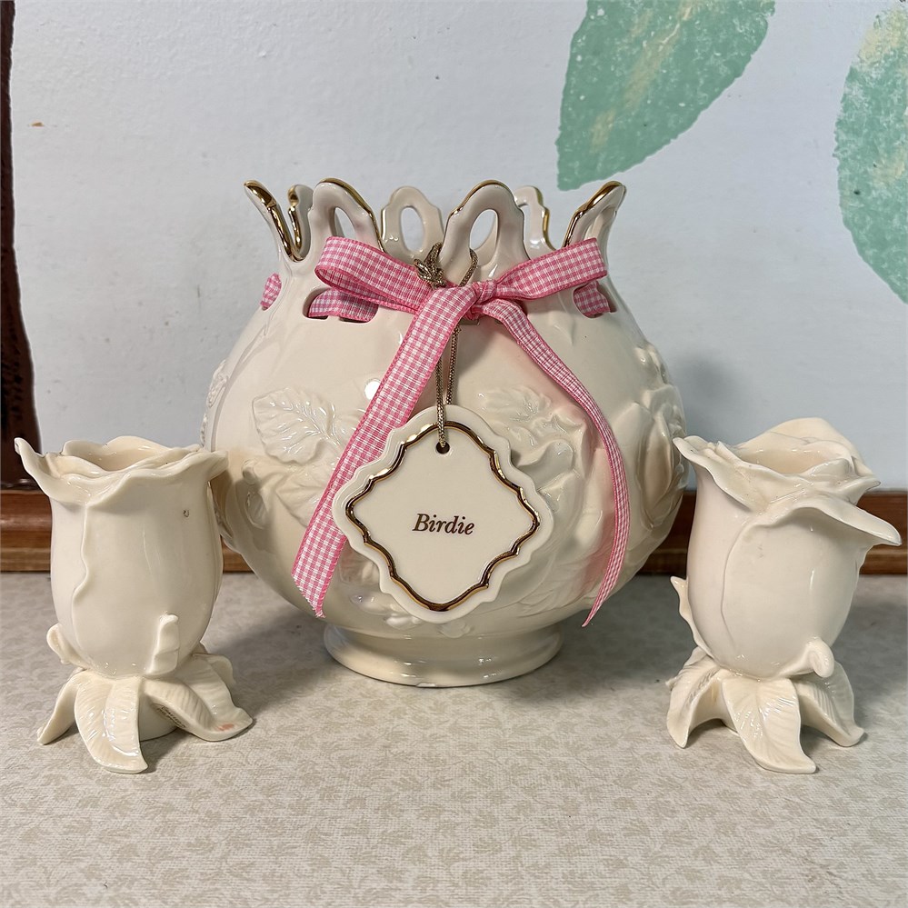 Lenox Cherished Rose Bowl Vase and Candleholders