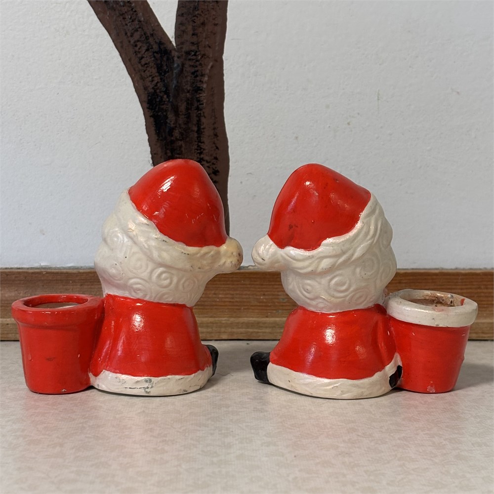 Retro Santa Claus Ceramic Candle Holders - Approx. 3.25"H
