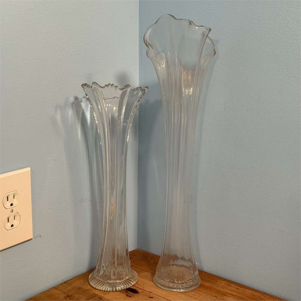 MCM Tall Clear Glass Swung Vases - 22"H (Tallest)