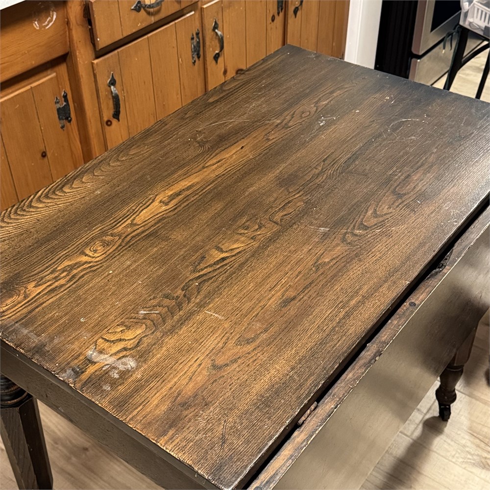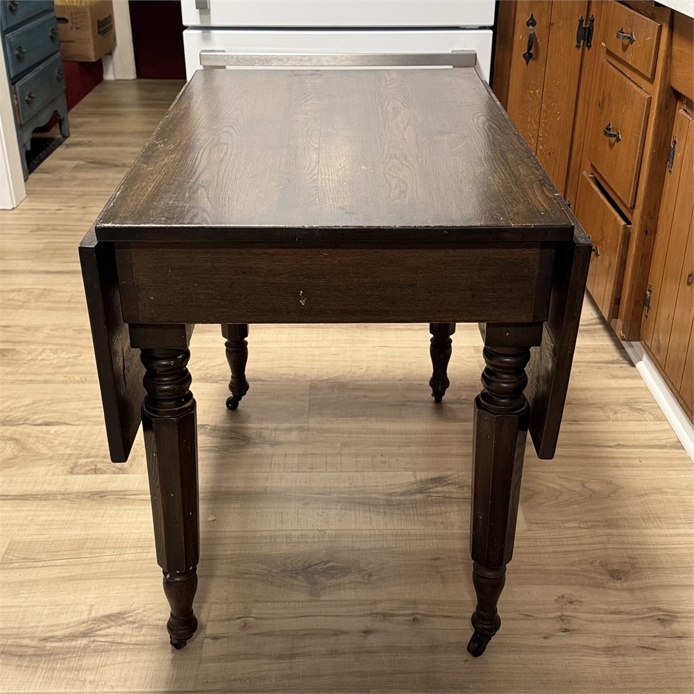 Antique Drop Leaf Wood Kitchen Table On Casters - 36 x 22 (Leaves Down) x 39"T