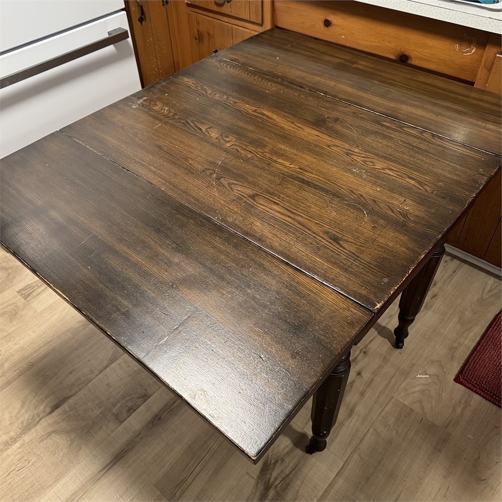 Antique Drop Leaf Wood Kitchen Table On Casters - 36 x 22 (Leaves Down) x 39"T View Watchlist >